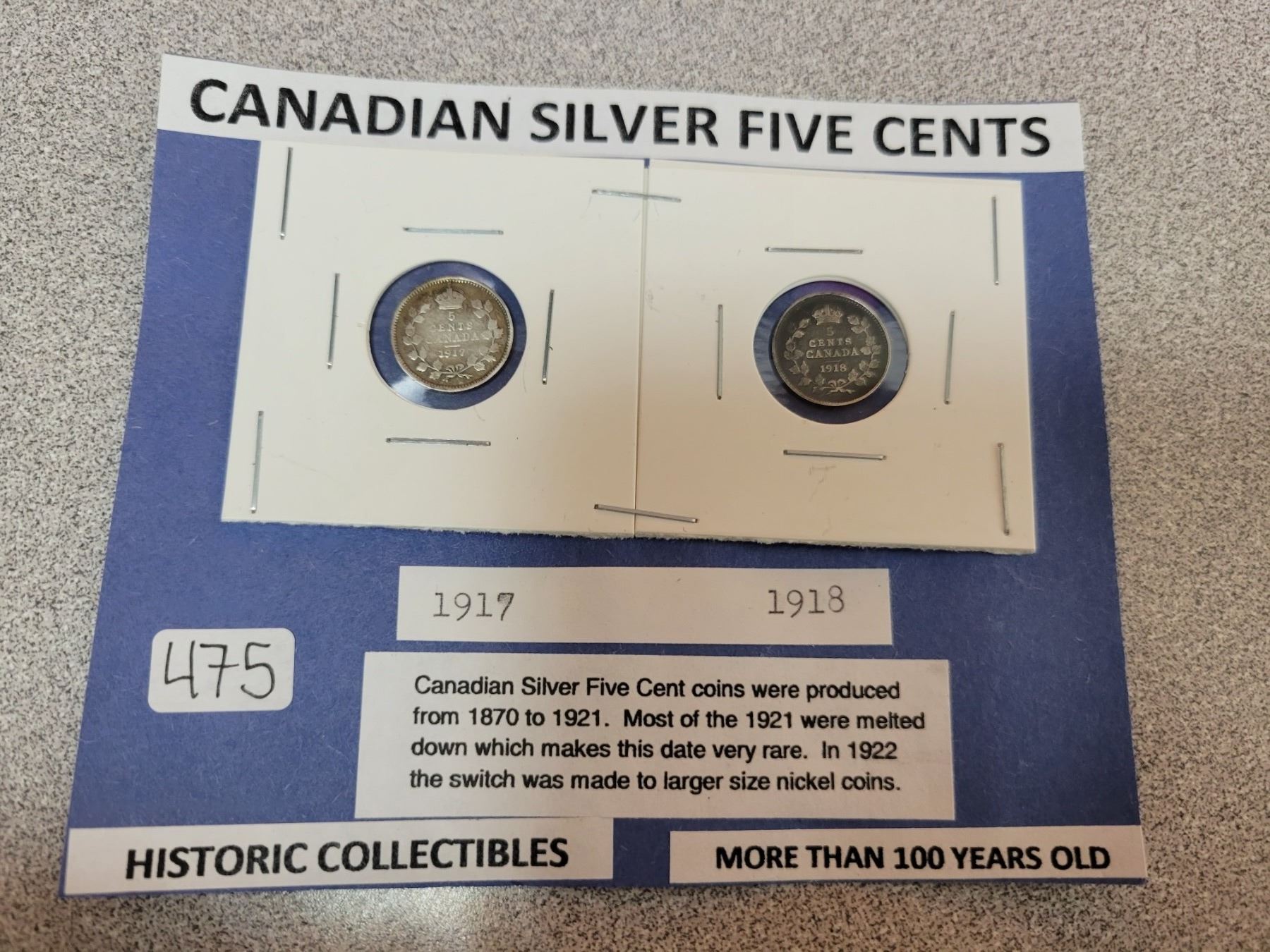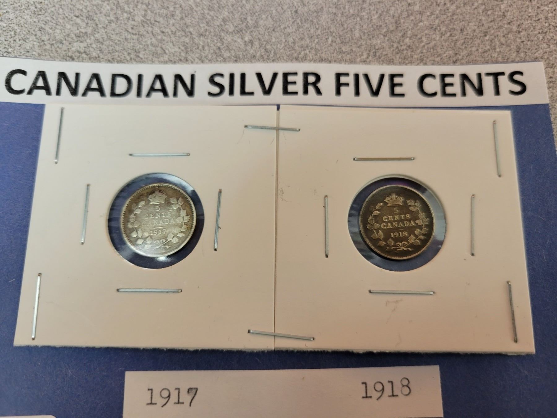 1917 & 1918 Canadian silver 5¢ five cent coins