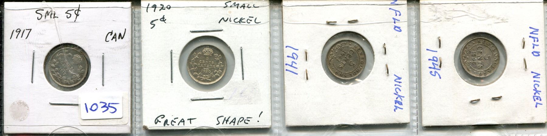 1917, 20, 41, 45 5 CENTS (2-CANADA, 2 NEWFOUNDLAND)