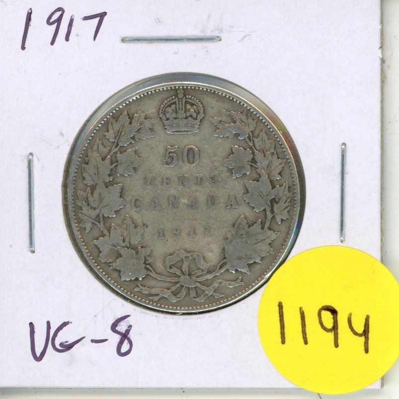 1917 Canadian Silver 50 Cents. World war I issue. VG-8.
