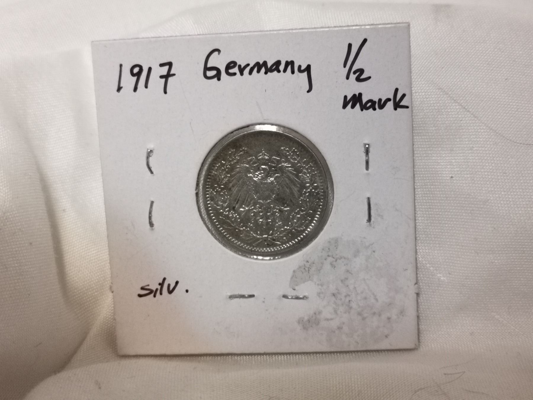 1917 Silver German Half Mark Coin