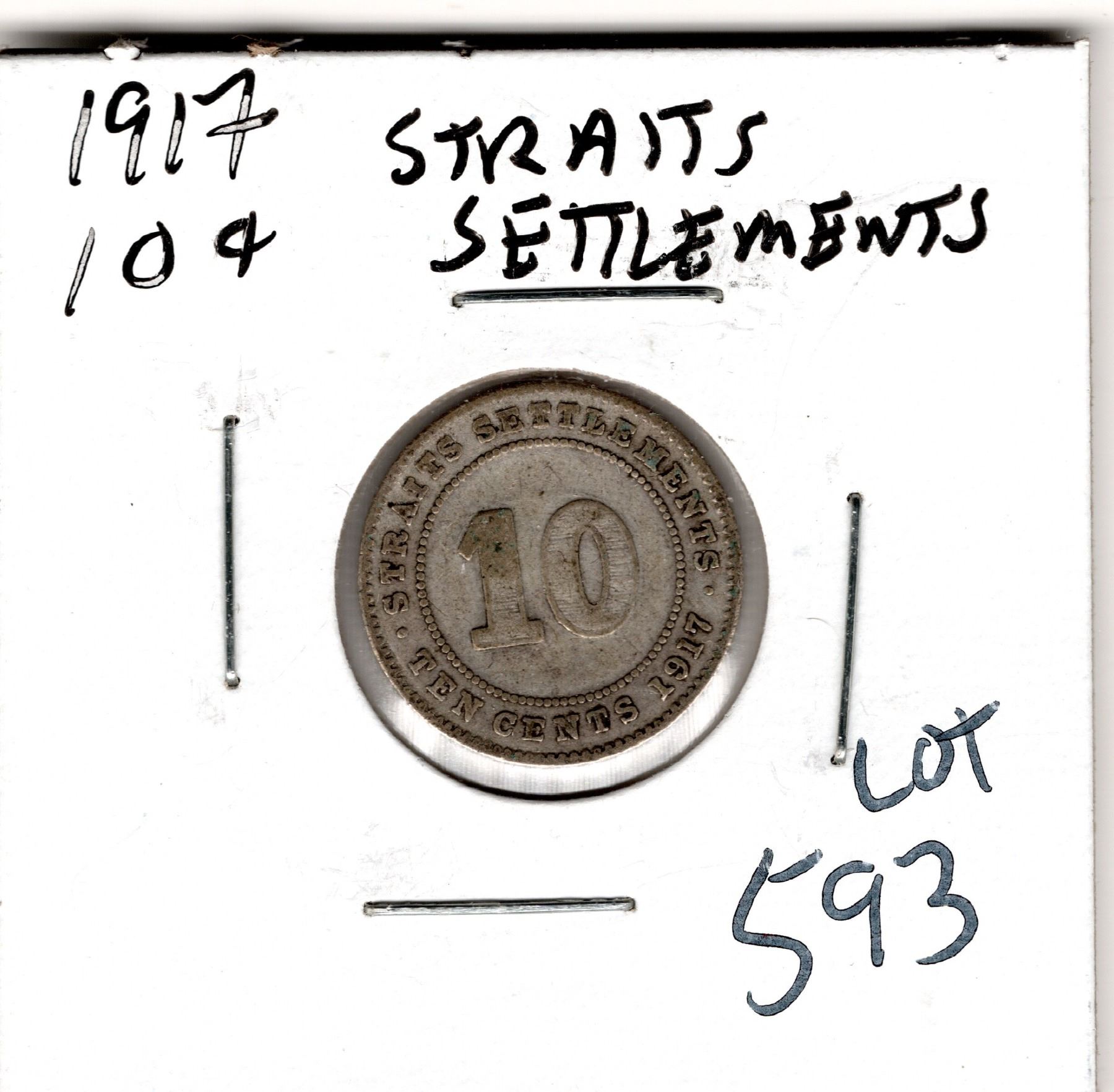 1917 TEN CENT STRAITS SETTLEMENTS SILVER