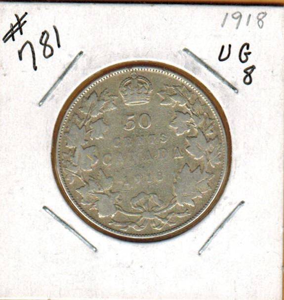 1918 CANADIAN SILVER 50 CENT COIN