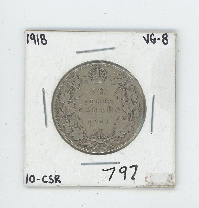 1918 Canada 50 Cent Coin 10-CSR VG-8