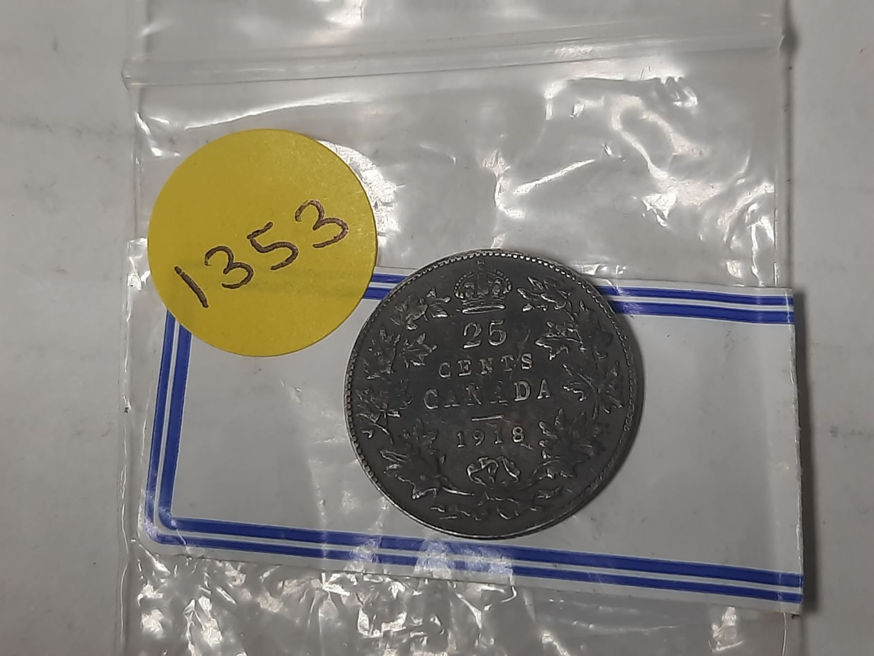1918 Canada Silver 25 Cents Coin.