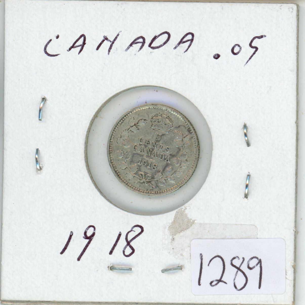 1918 Canadian 5 cent silver coin