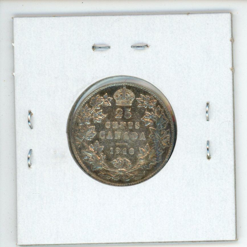 1918 Canadian Silver 25 Cents. Last year of World War I. VF-30. Nicely Toned.
