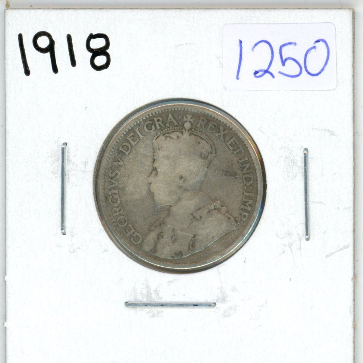1918 Canadian silver, 25 cent coin