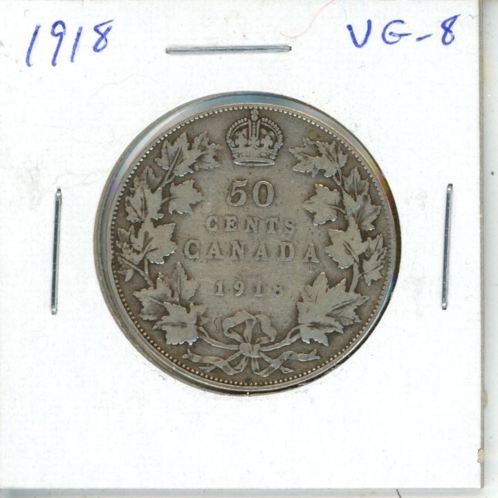 1918 Silver 50 Cents. Last year of World War I. VG-8.