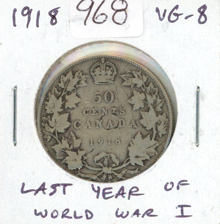 1918 Silver 50 Cents. Last year of World War I. VG-8.