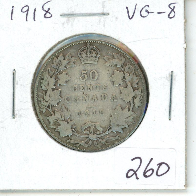 1918 Silver 50 Cents. Last year of World War I. VG-8.