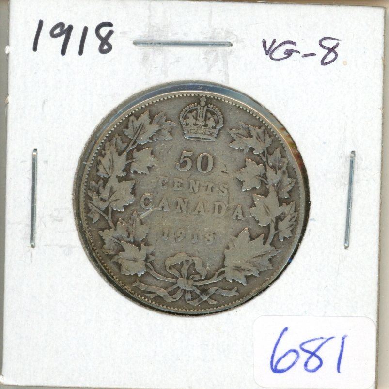 1918 Silver 50 Cents. The last year of World War I. VG-8.