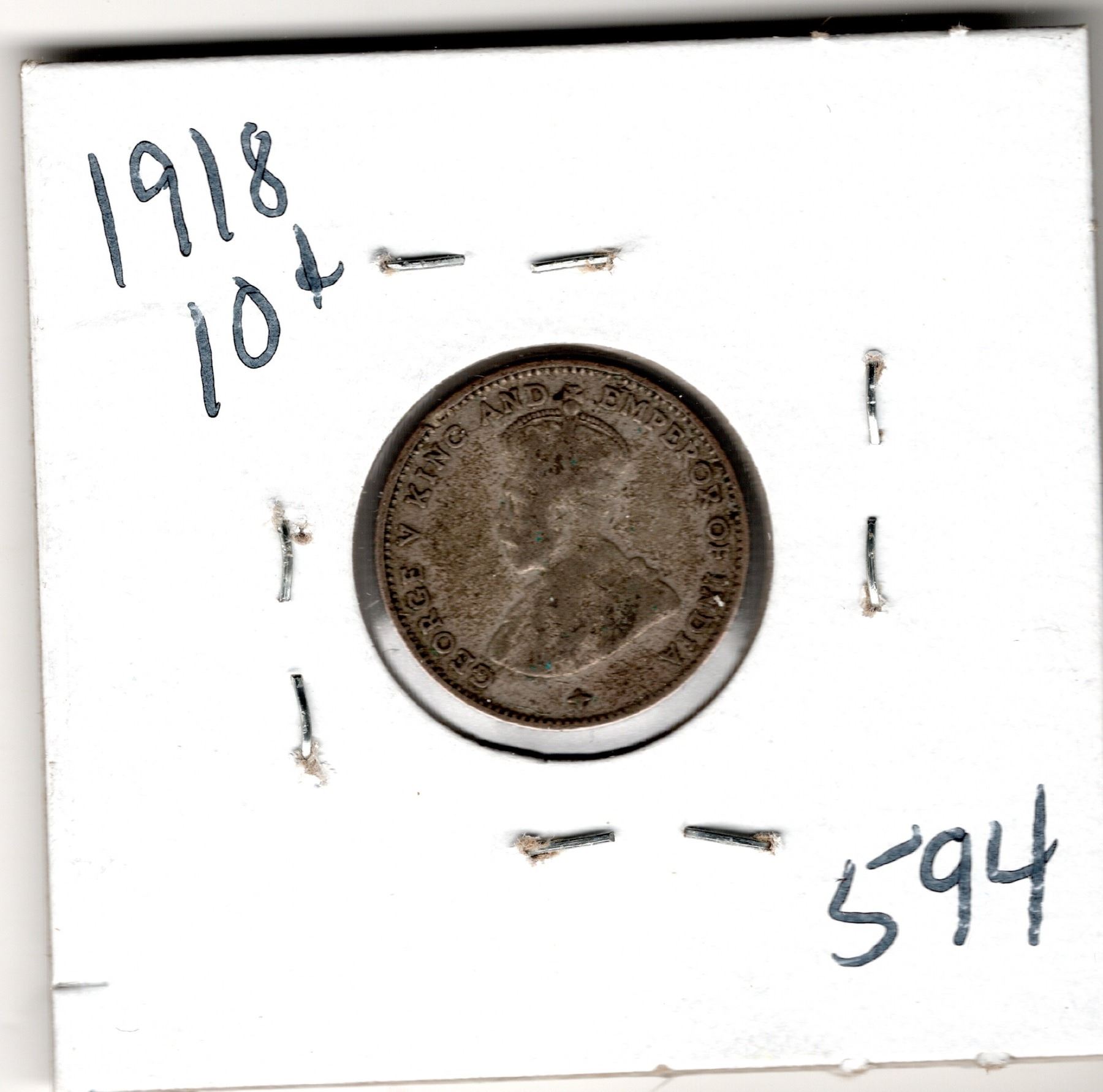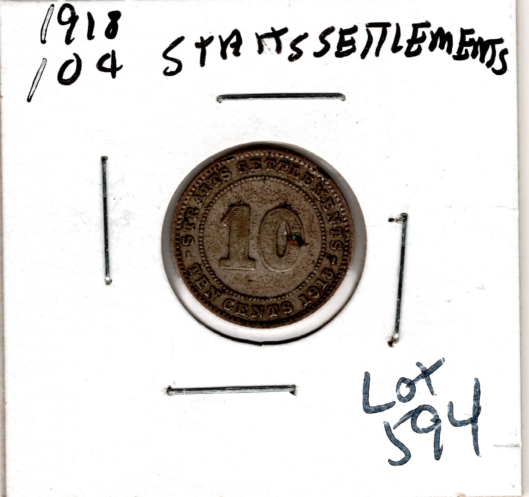 1918 TEN CENT STRAITS SETTLEMENTS SILVER