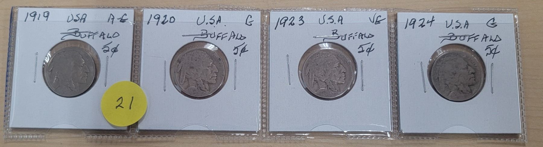 1919, 20, 23, 24 USA buffalo nickels