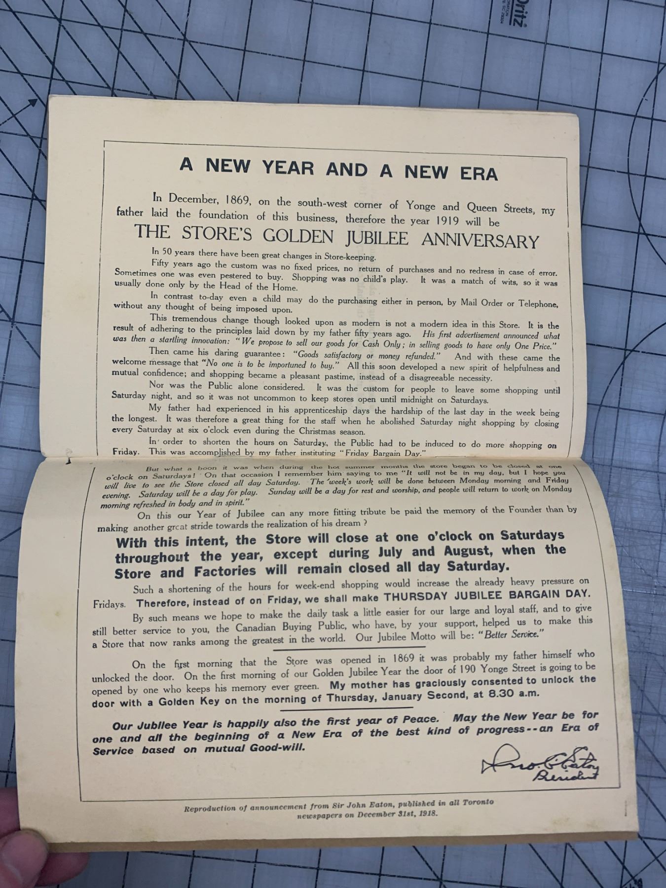 1919 ANTIQUE EATONS GOLDEN JUBILEE 1869-1919 24 PAGE BOOK
