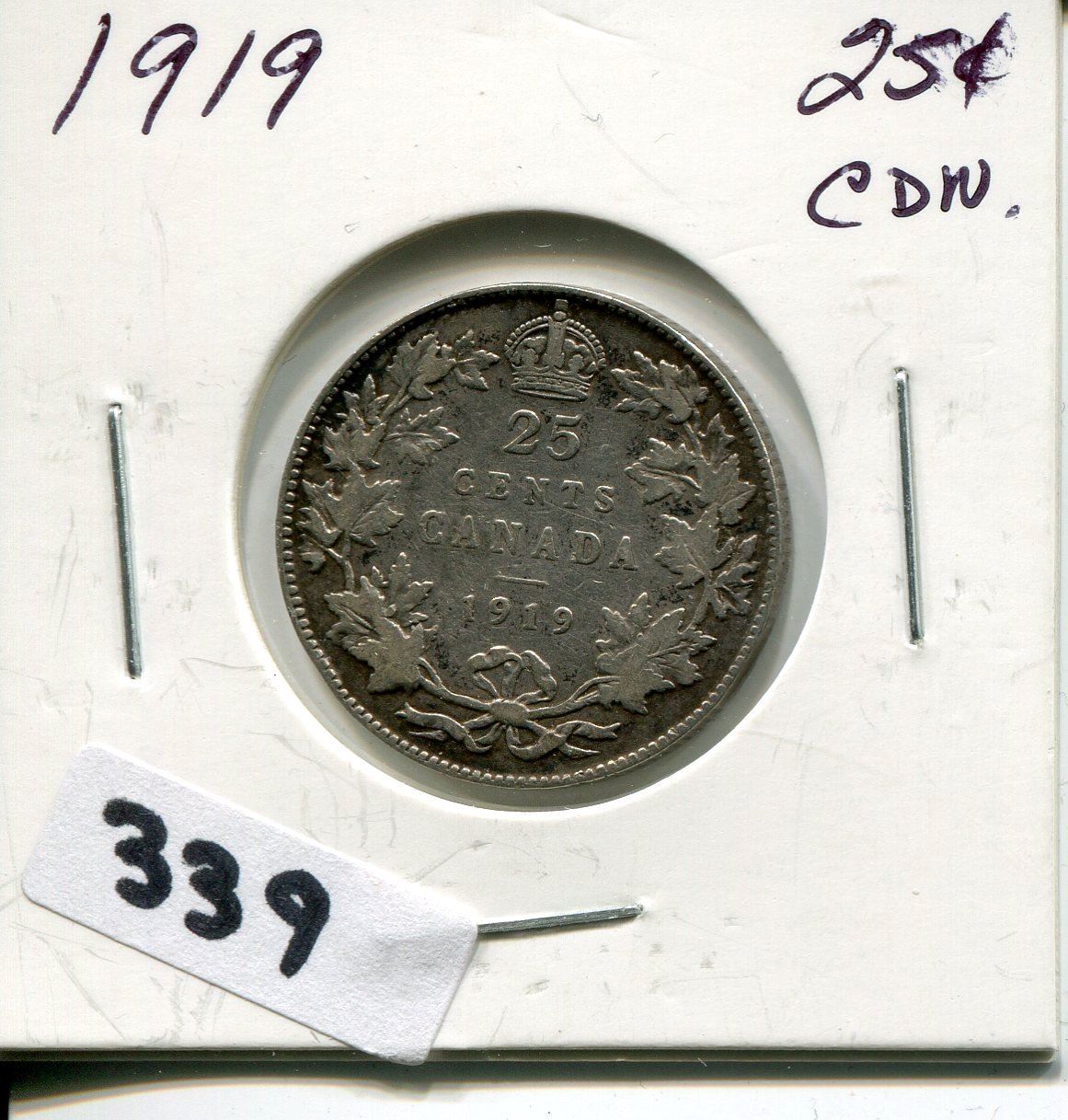 1919 CNDN SILVER 25 CENT PC