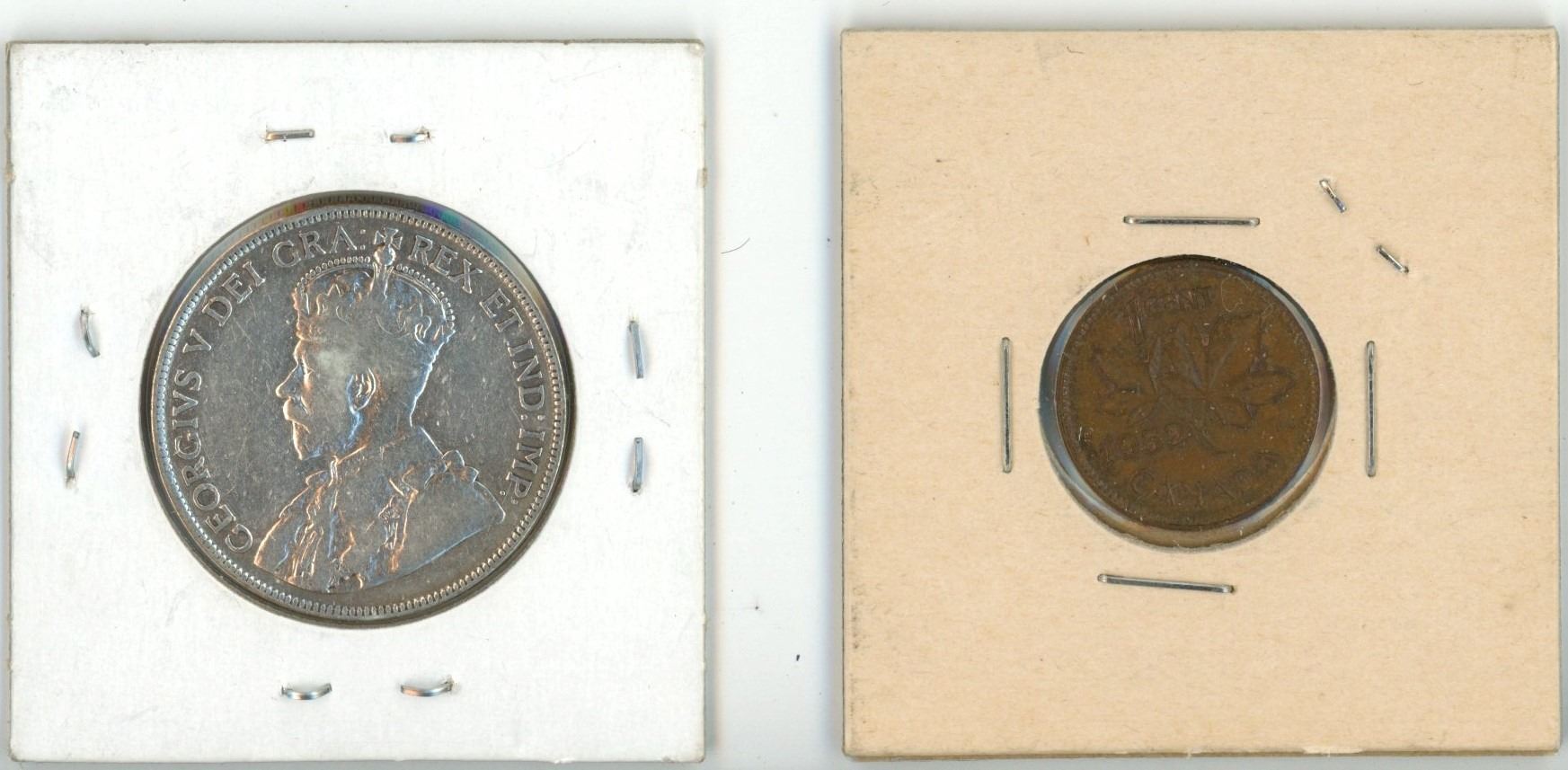 1919 Canada 50 cent silver coin,1952 Canada penny