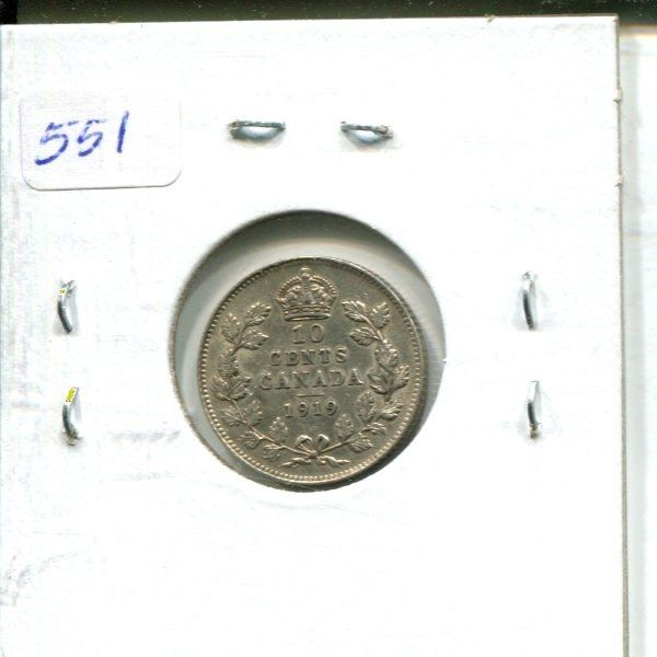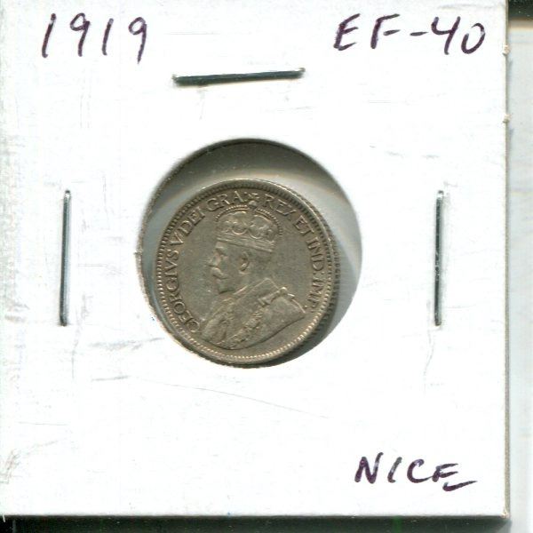 1919 Canadian Silver 10 Cents. EF-40. Nice.
