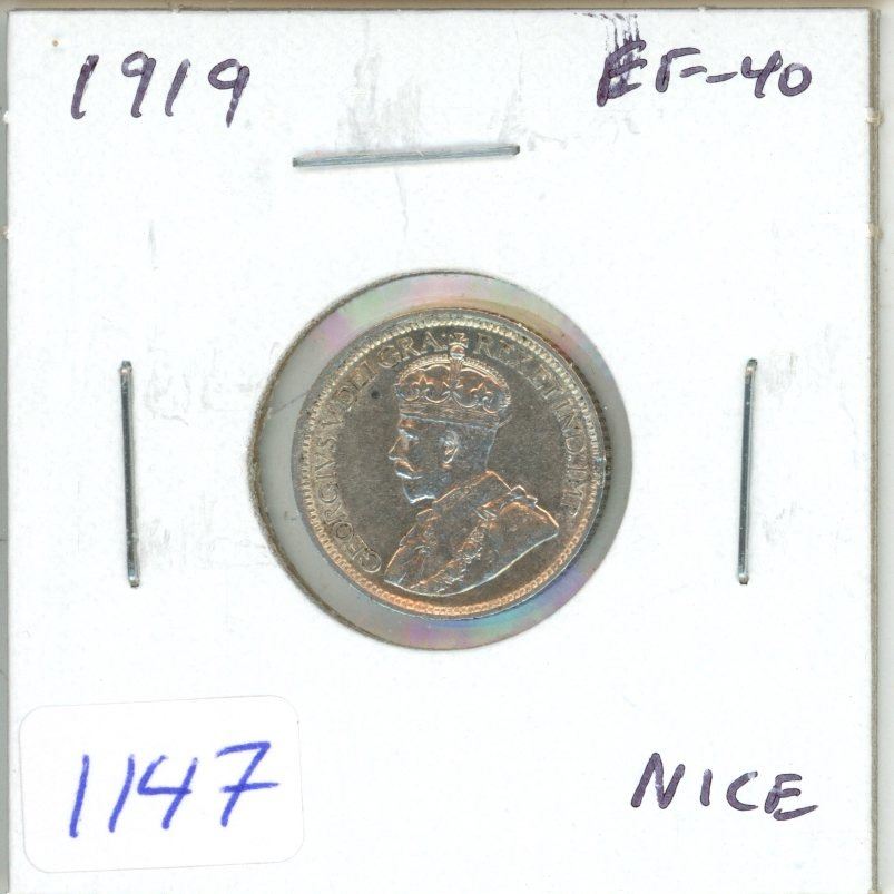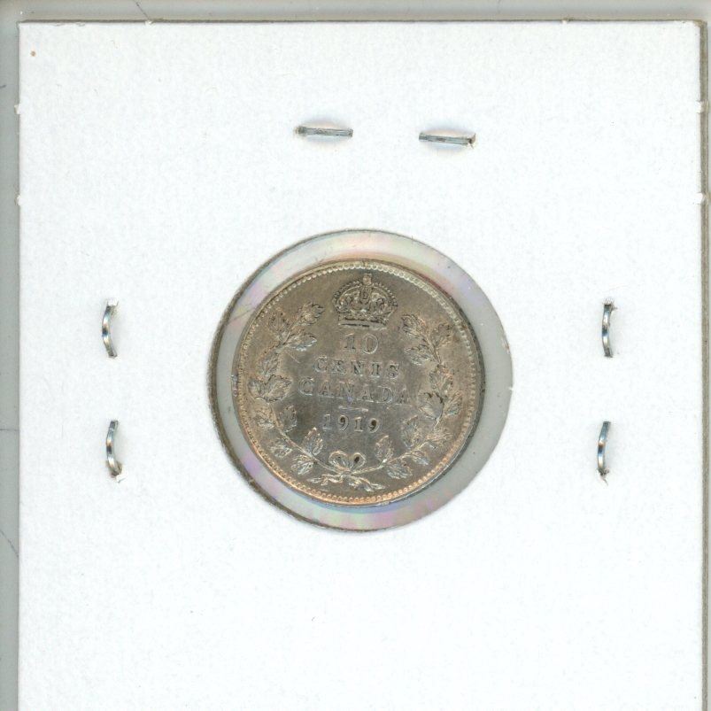 1919 Canadian Silver 10 Cents. EF-40. Nice.