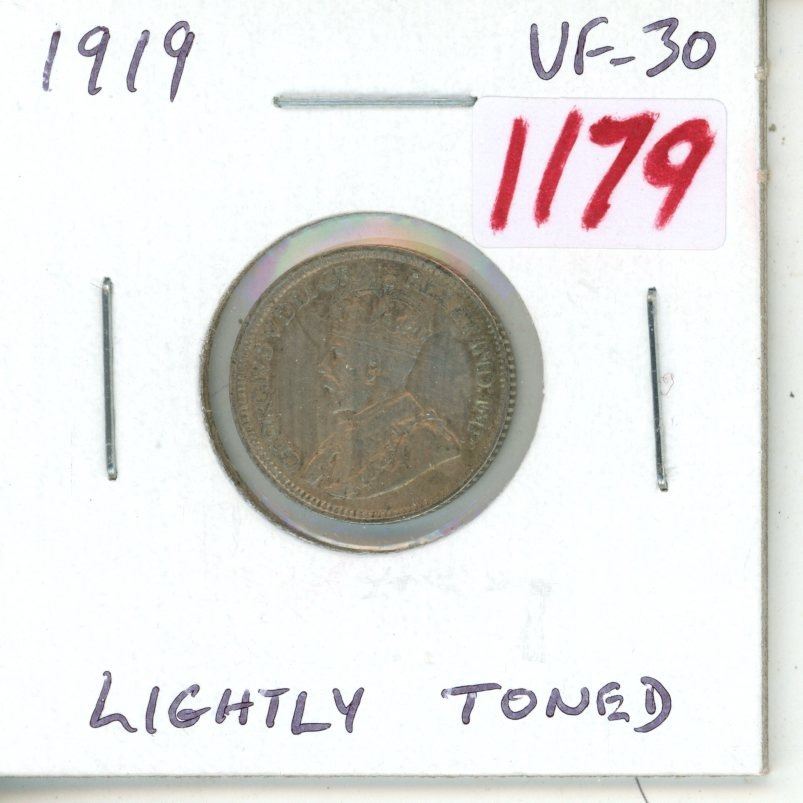 1919 Canadian Silver 10 Cents. VF-30. Lightly Toned.