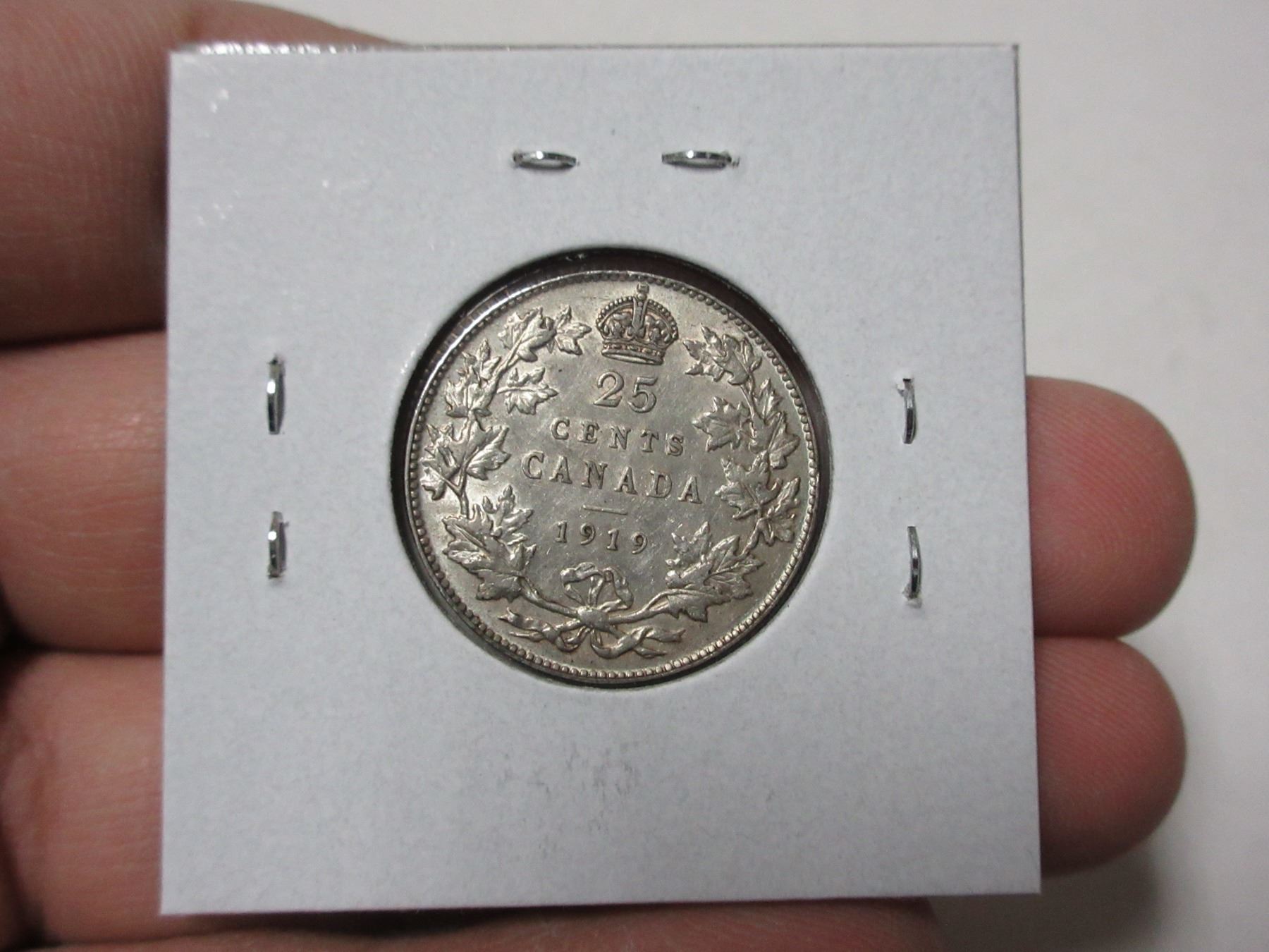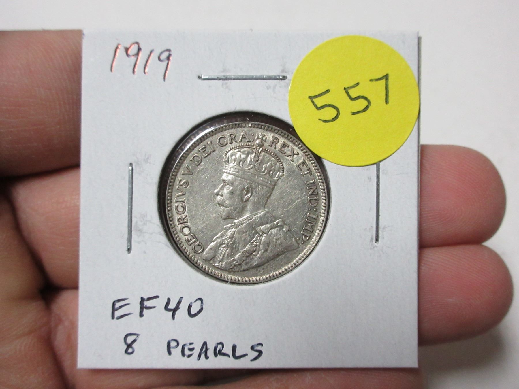 1919 Canadian Silver 25 Cents. EF40 with 8 pearls. Nice.