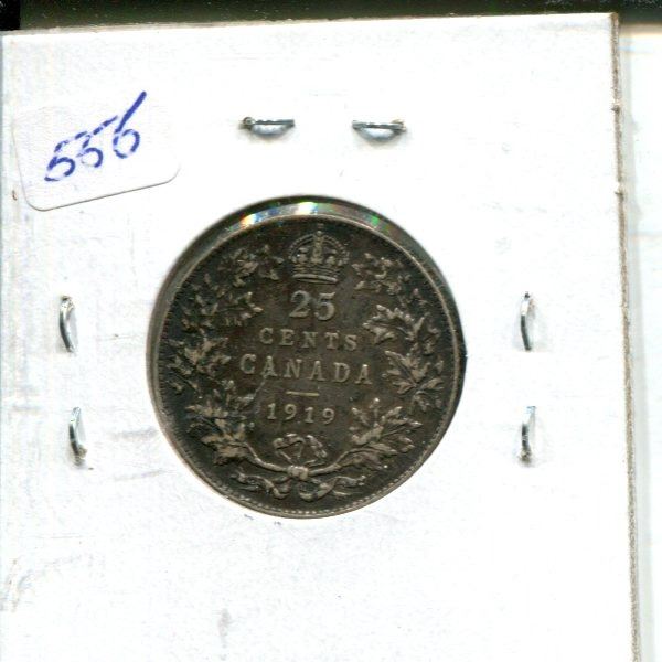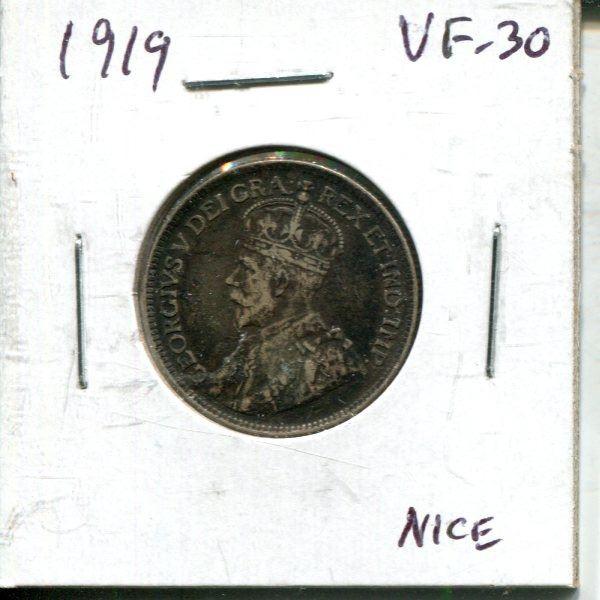1919 Canadian Silver 25 Cents. VF-30. Nice.