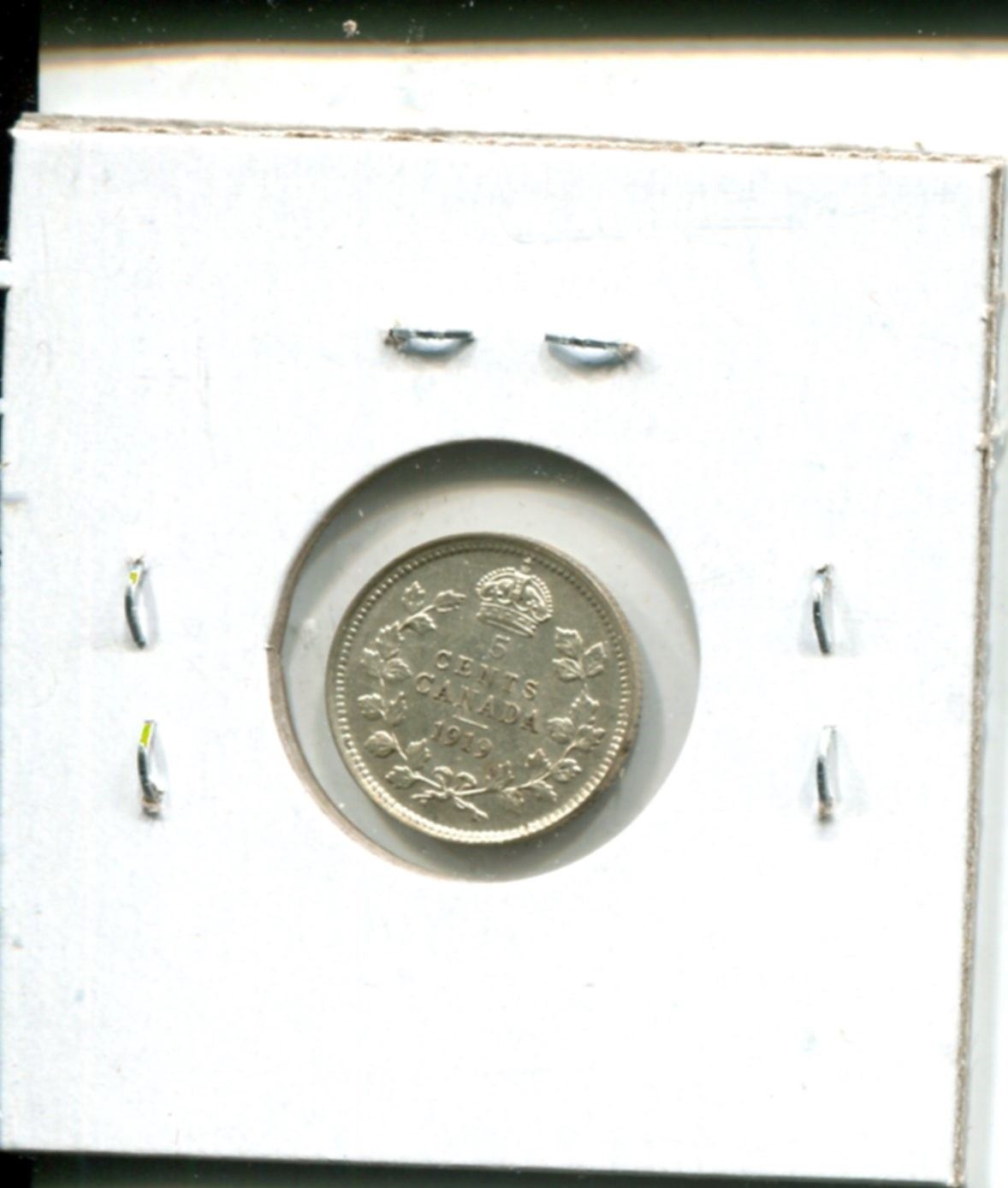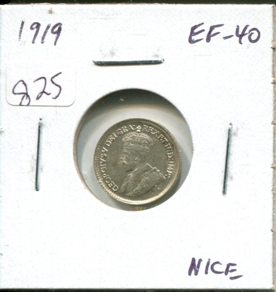 1919 Canadian Silver 5 Cents. EF-40. Nice.