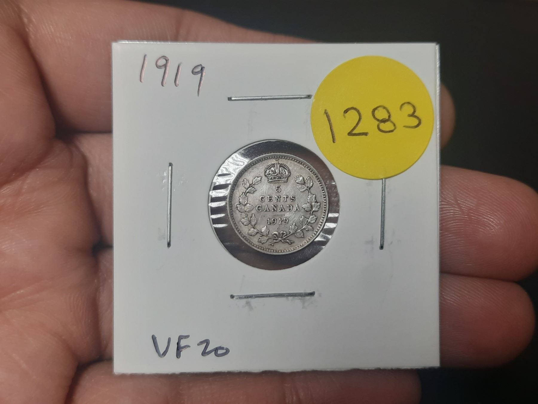 1919 Canadian Silver 5 Cents. VF20.