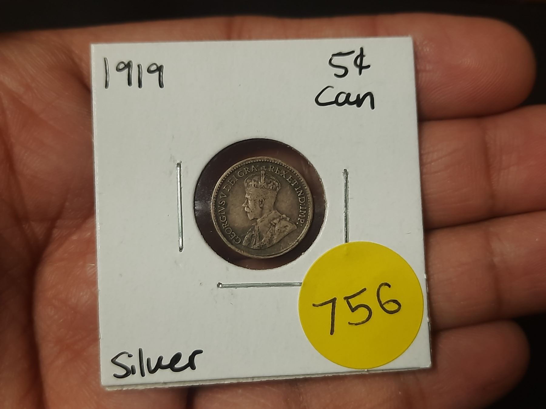 1919 Canadian Silver Small Five Cents