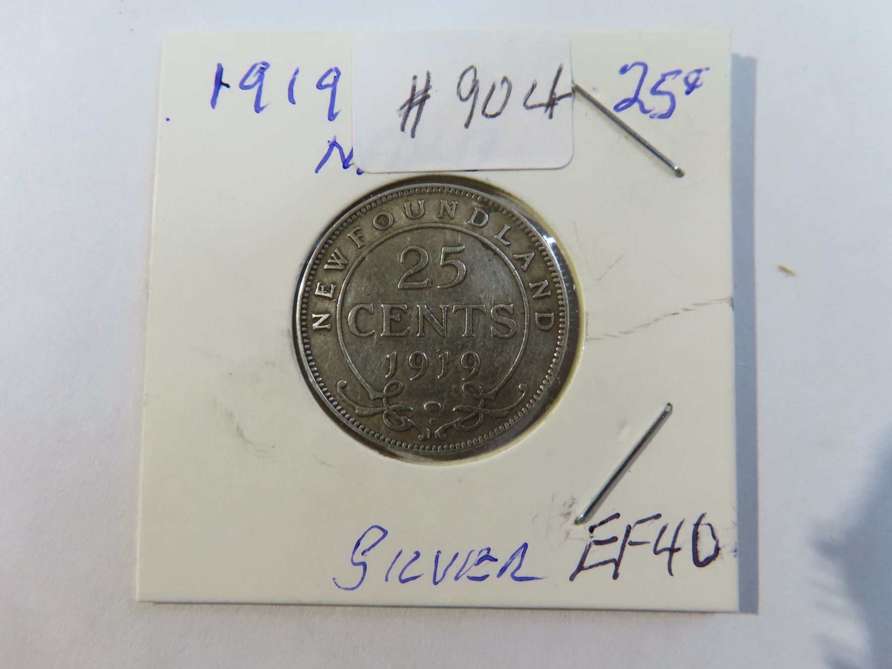 1919 NFLD 25 cent silver coin - EF40