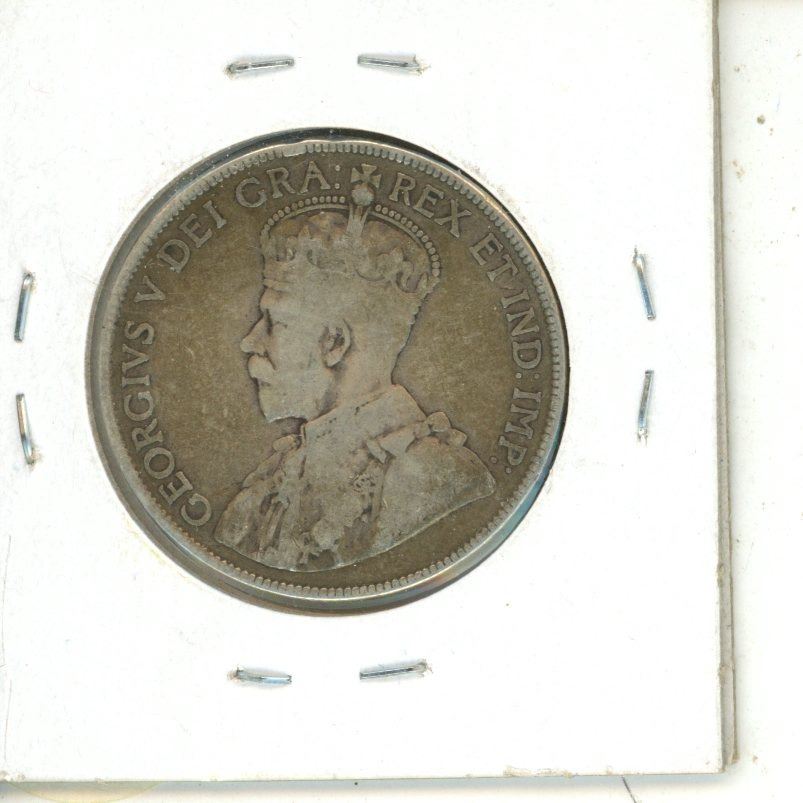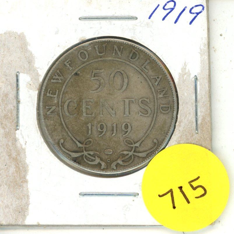 1919 New Foundland Silver 50 Cents Coin.