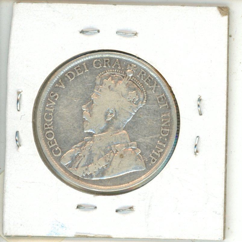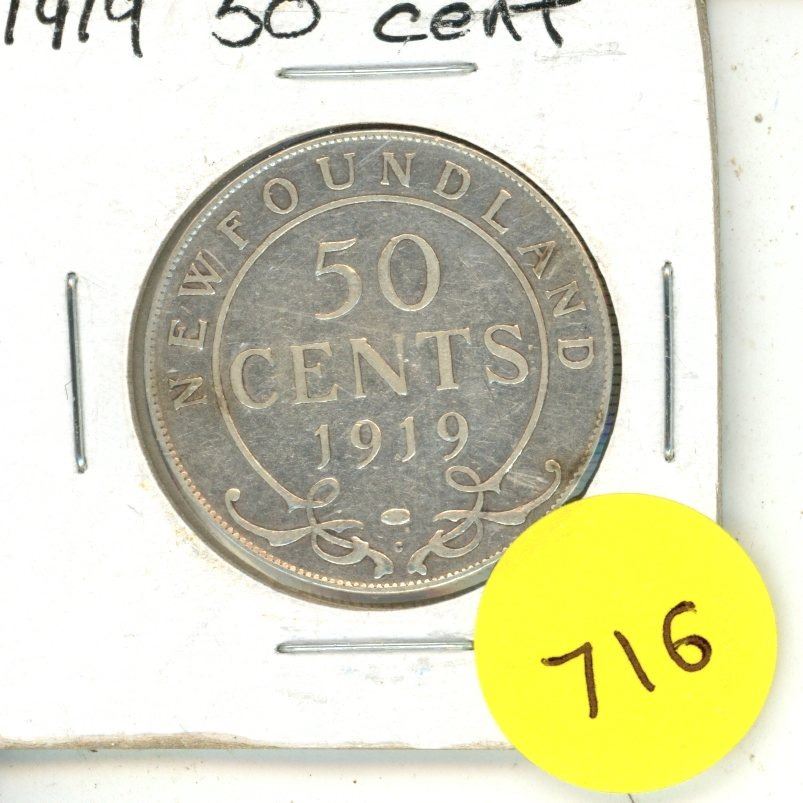 1919 New Foundland Silver 50 Cents Coin.