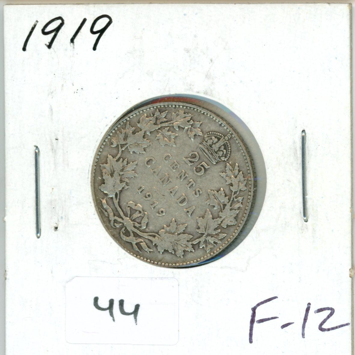 1919 Silver 25 Cents. F-12.