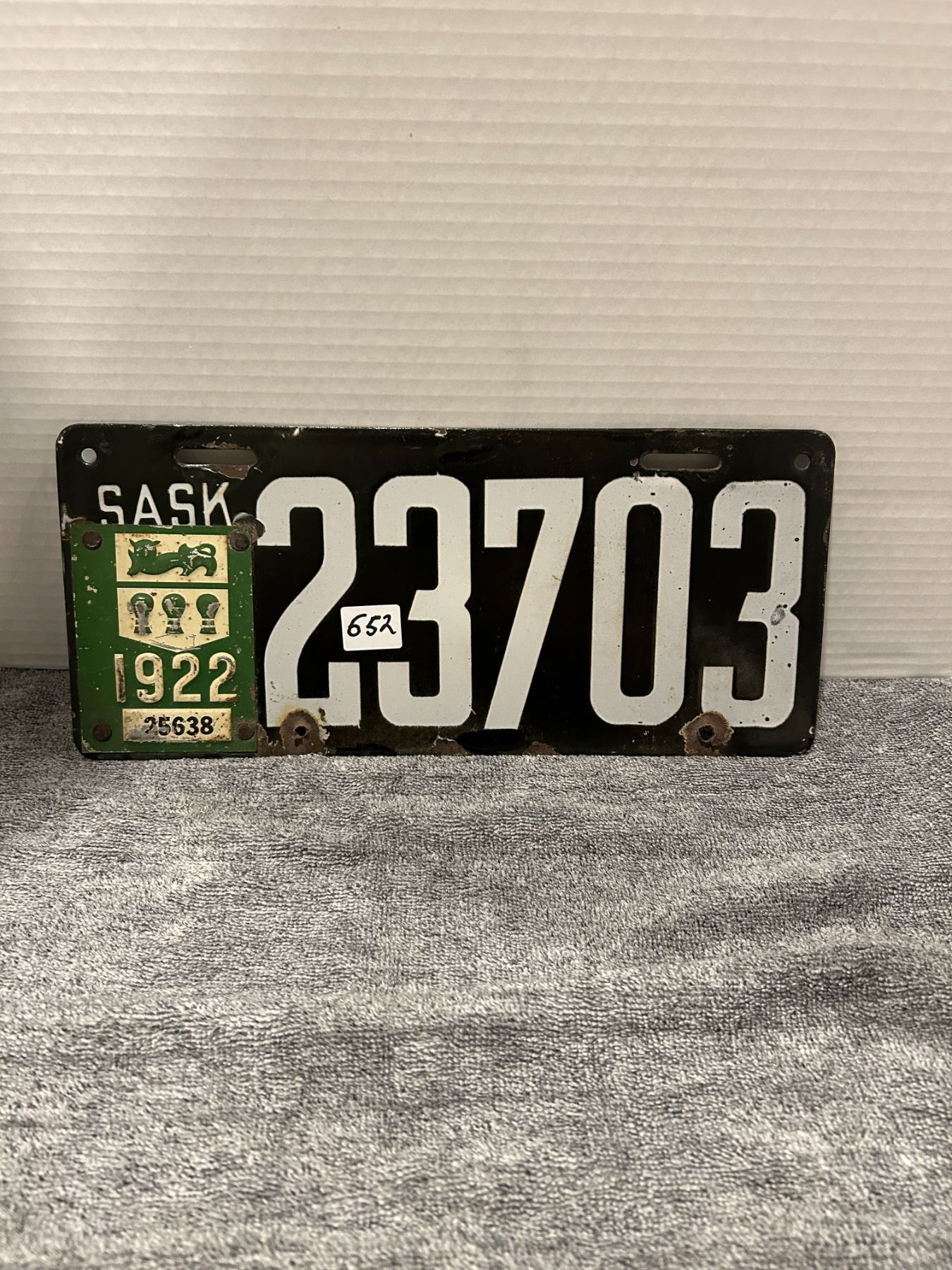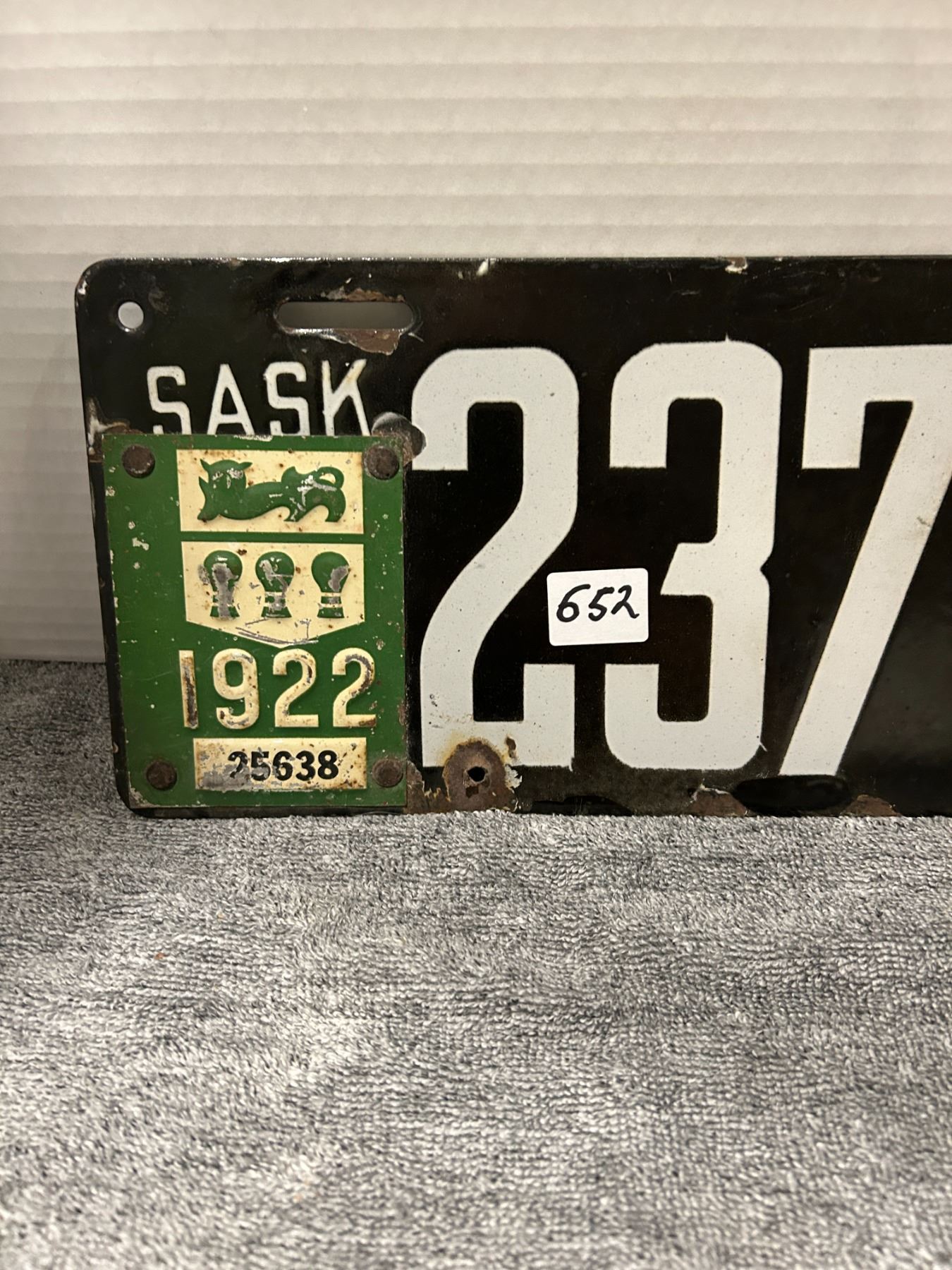 1919 porcelain sask license plate