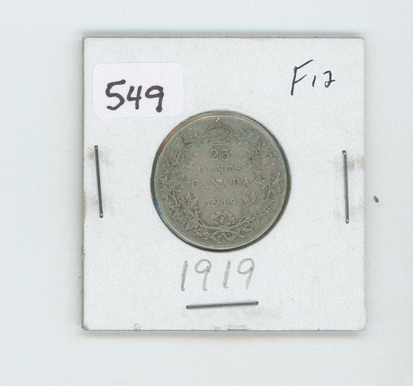 1919F12- CANADIAN SILVER 25 CENT