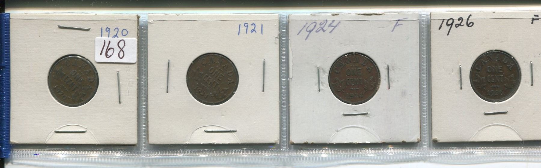 1920, 21,24,26,4-Small Canadian penny,King George V