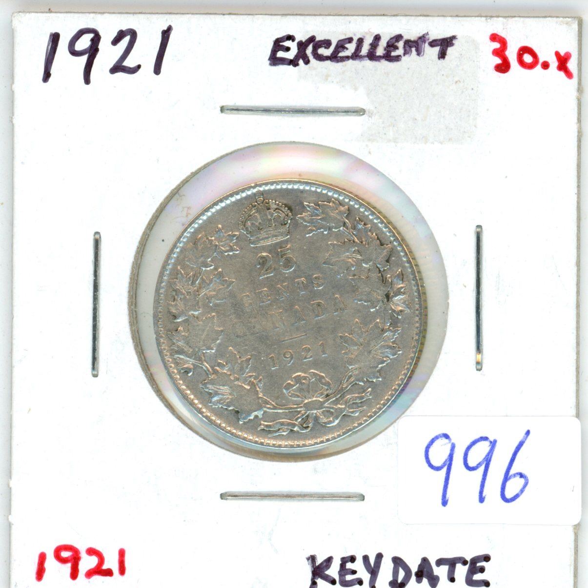 1920 Canadian 25 cent silver coin