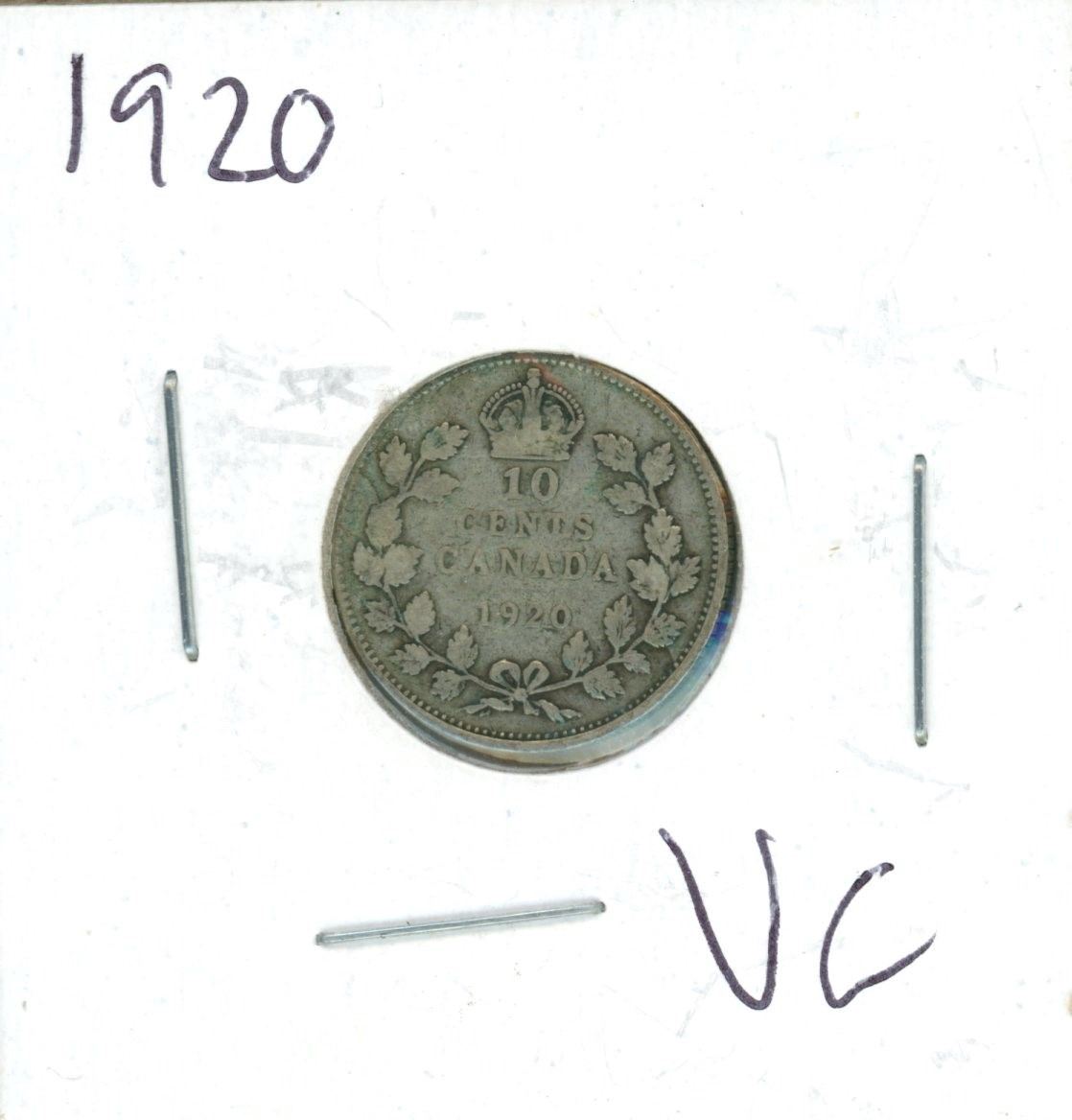 1920 Canadian Silver 10 Cent Coin (VG)