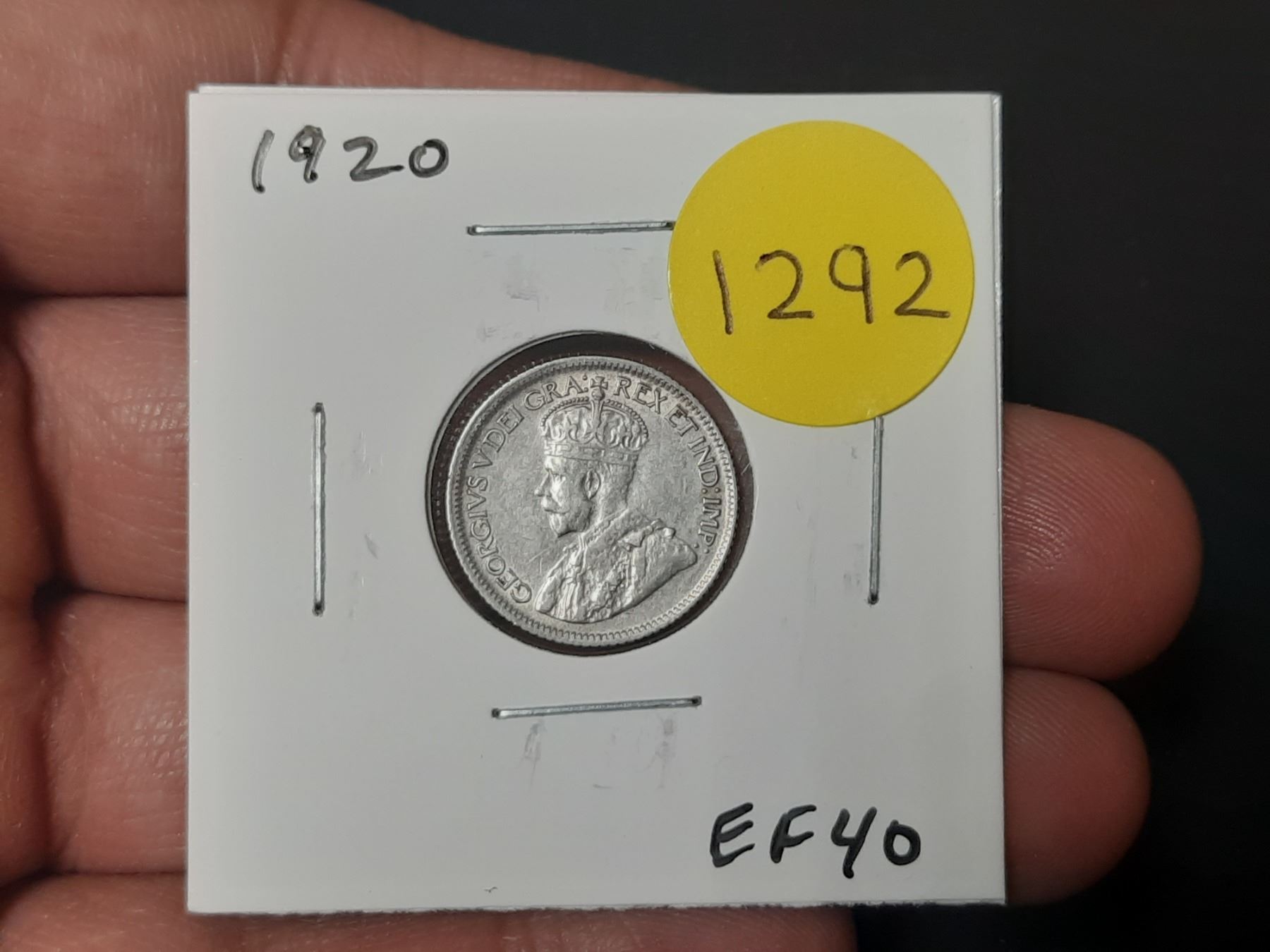 1920 Canadian Silver 10 cents. EF40.