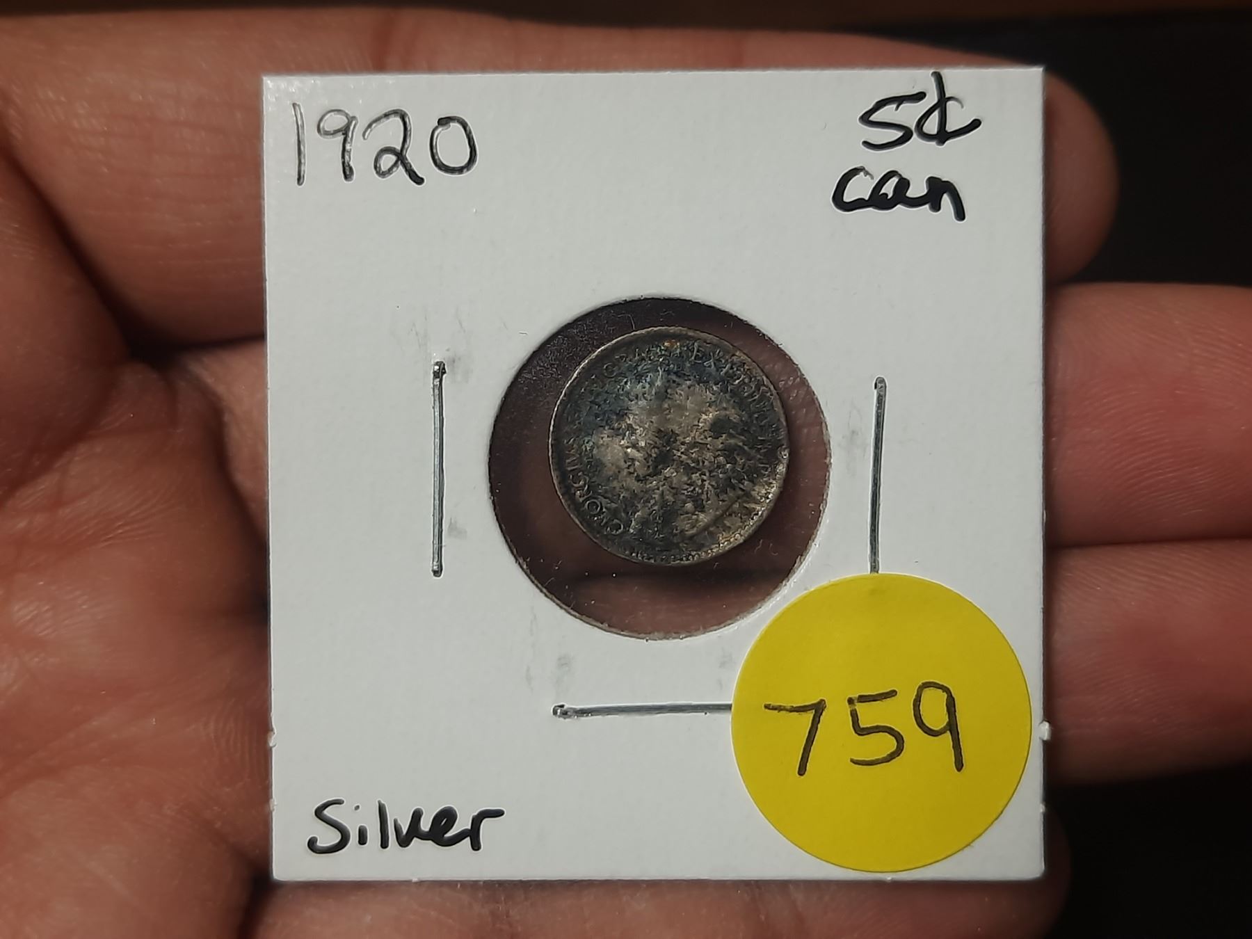 1920 Canadian Silver Small Five Cents