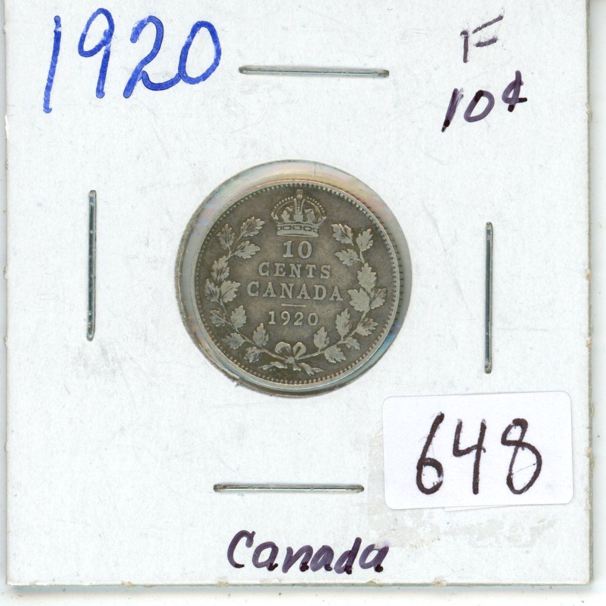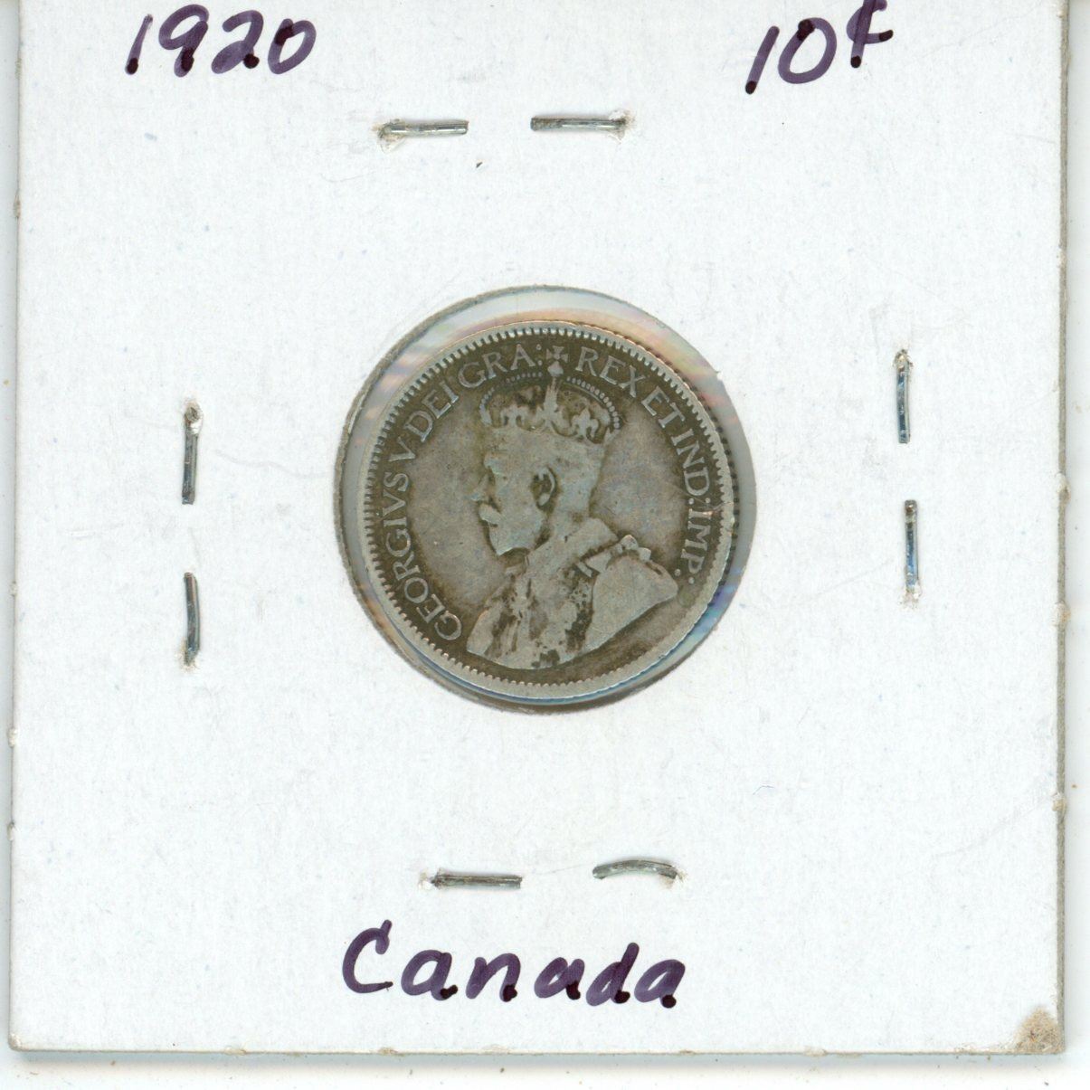 1920 Canadian silver 10 cent coin