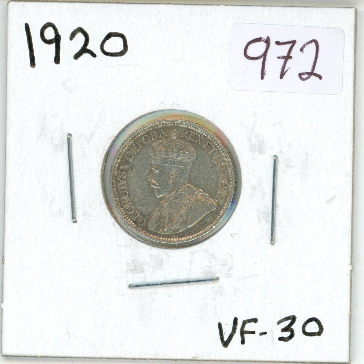 1920 Canadian silver 10 cent coin