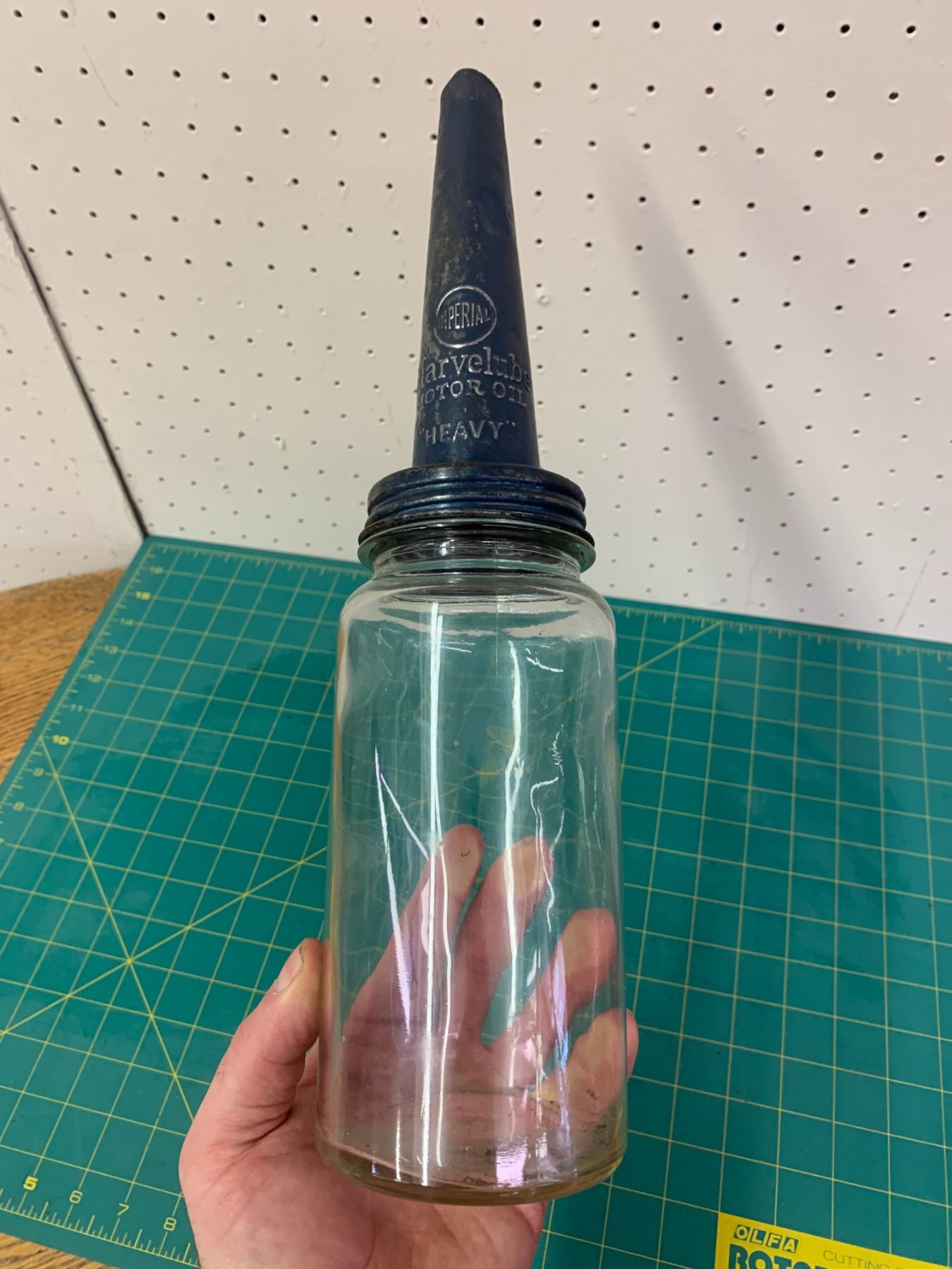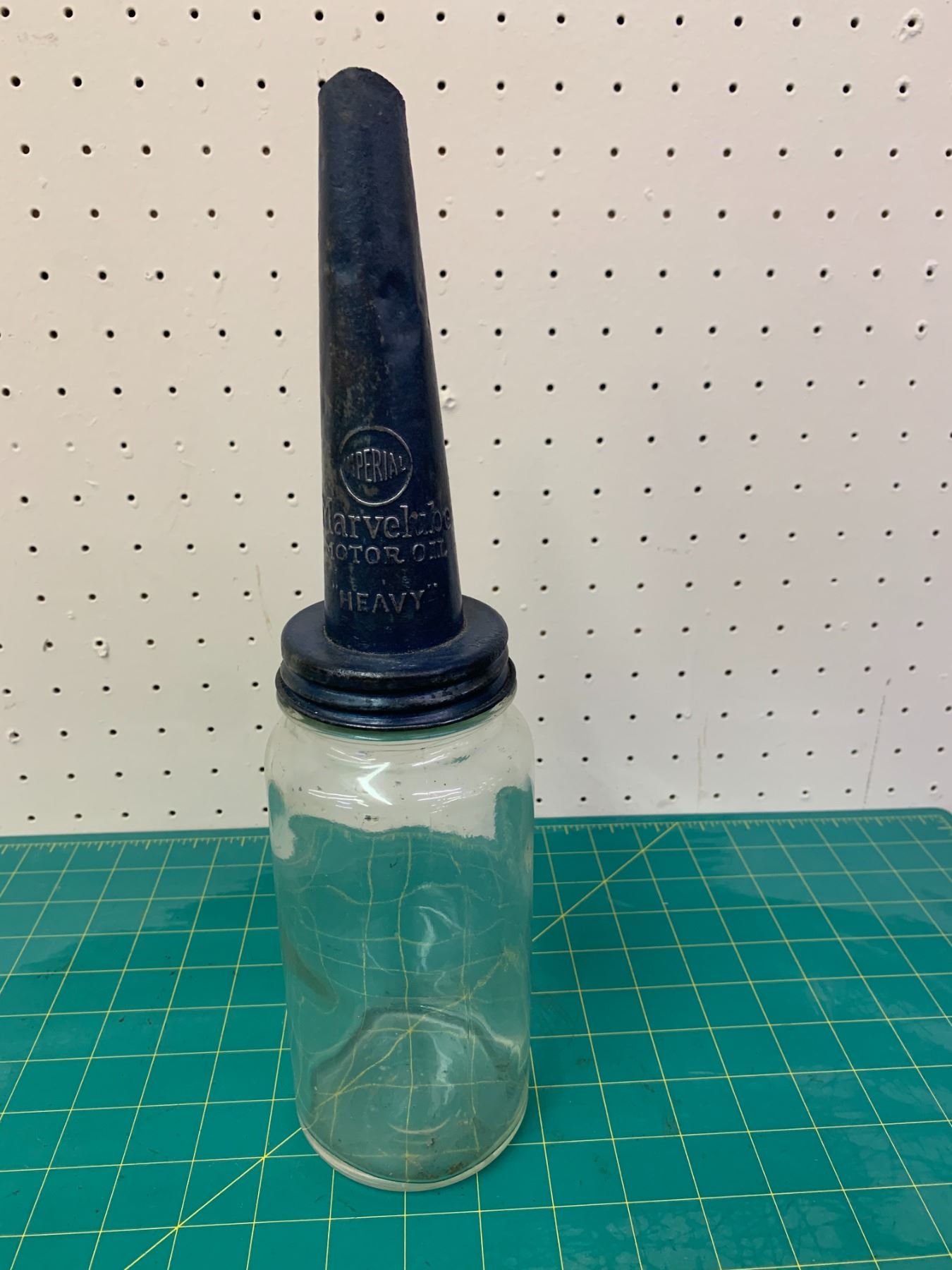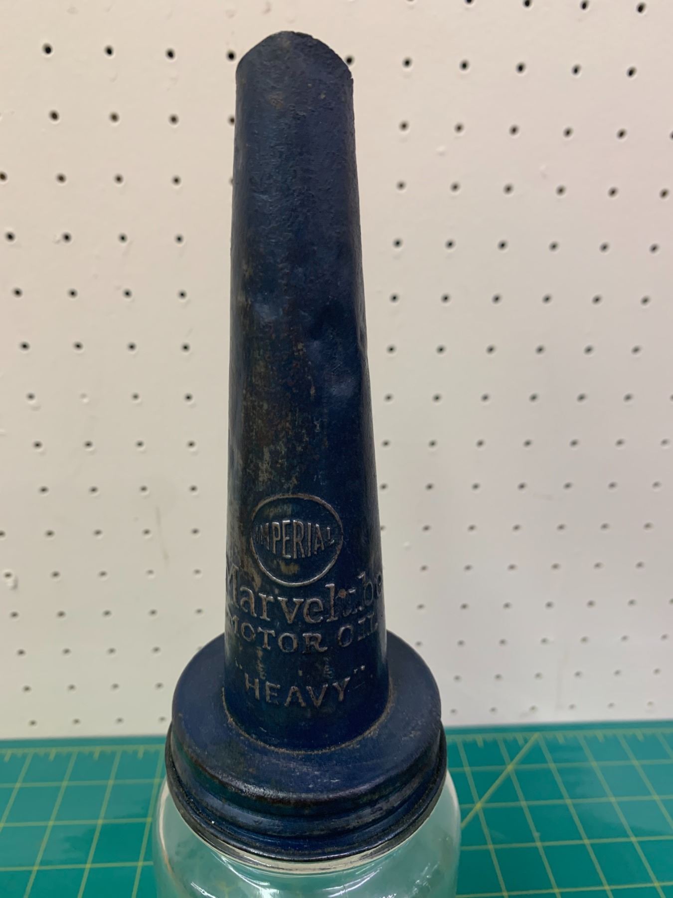 1920S IMPERIAL MARVELUBE OIL BOTTLE SPOUT AND BOTTLE