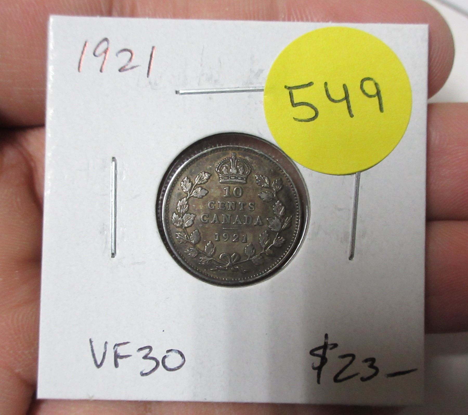 1921 Canadian Silver 10 Cents. VF30. Nice.