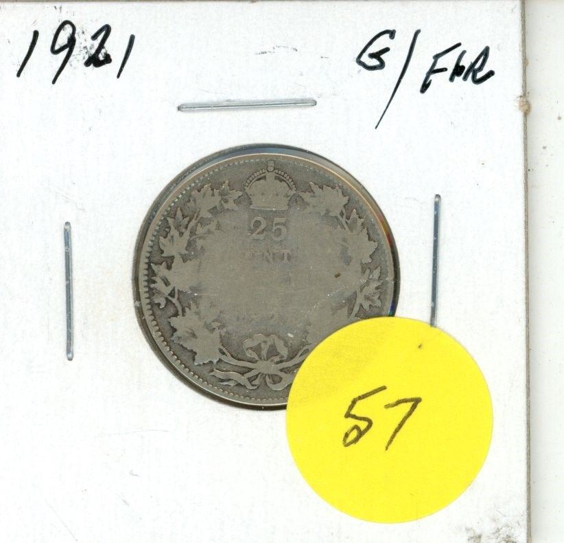 1921 G/Filler Canadian twenty five cent silver coin