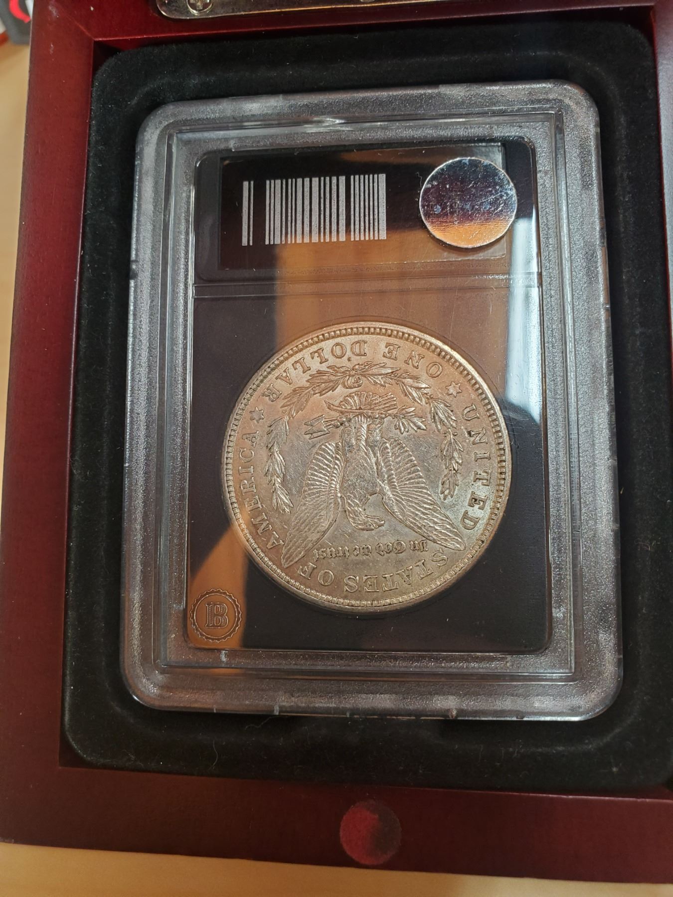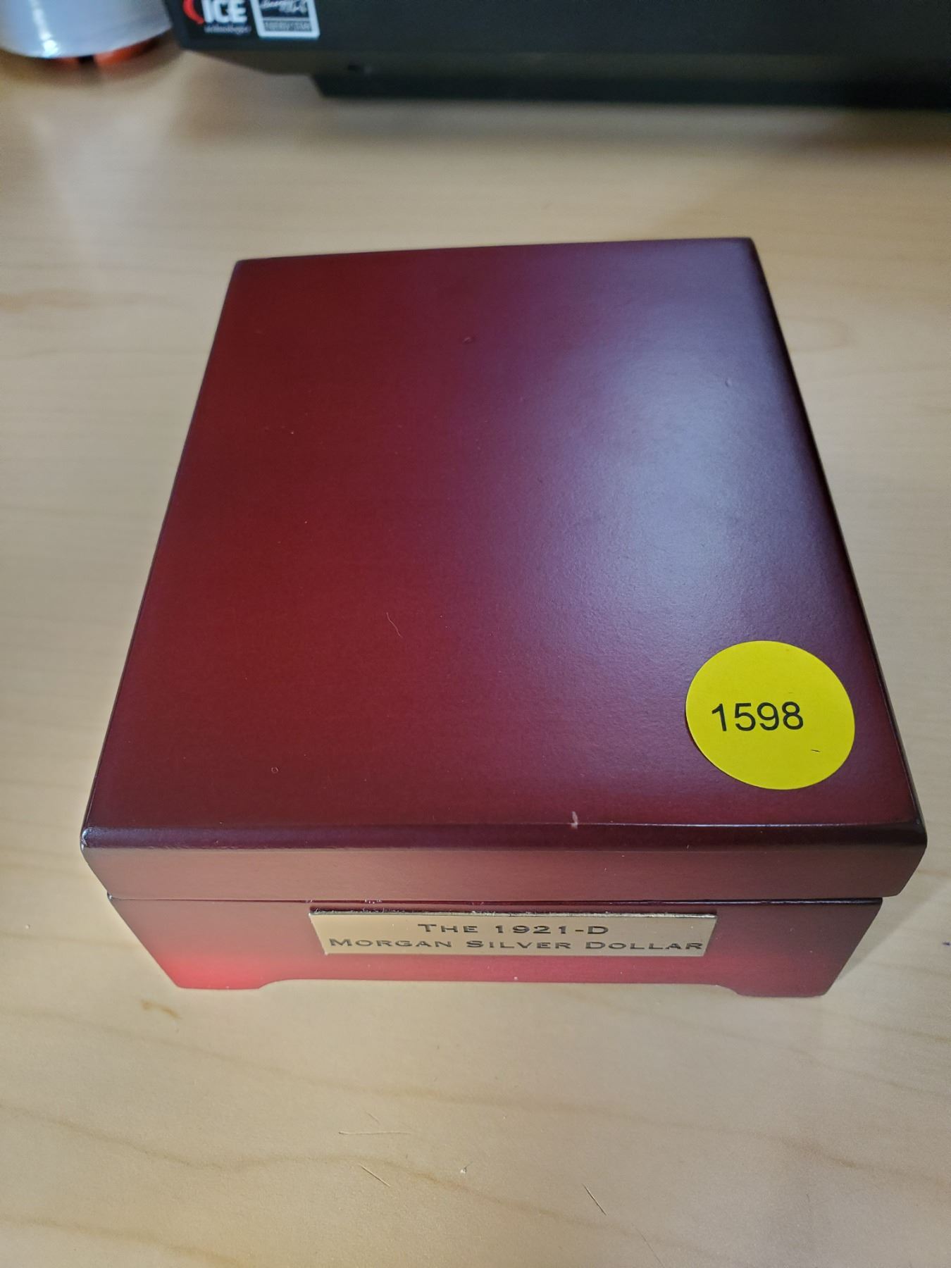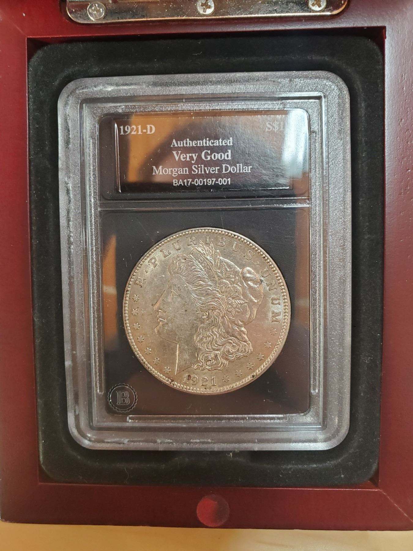 1921D US Morgan Silver Dollar in Mahogany Display Case