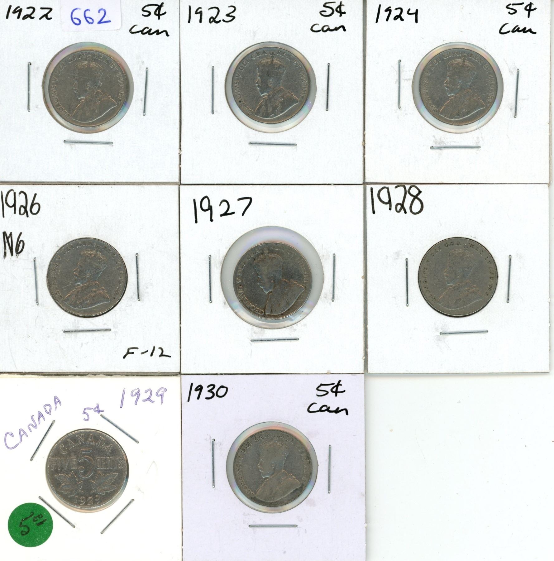 1922-1930 Canadian Five Cents. (1925 Missing)