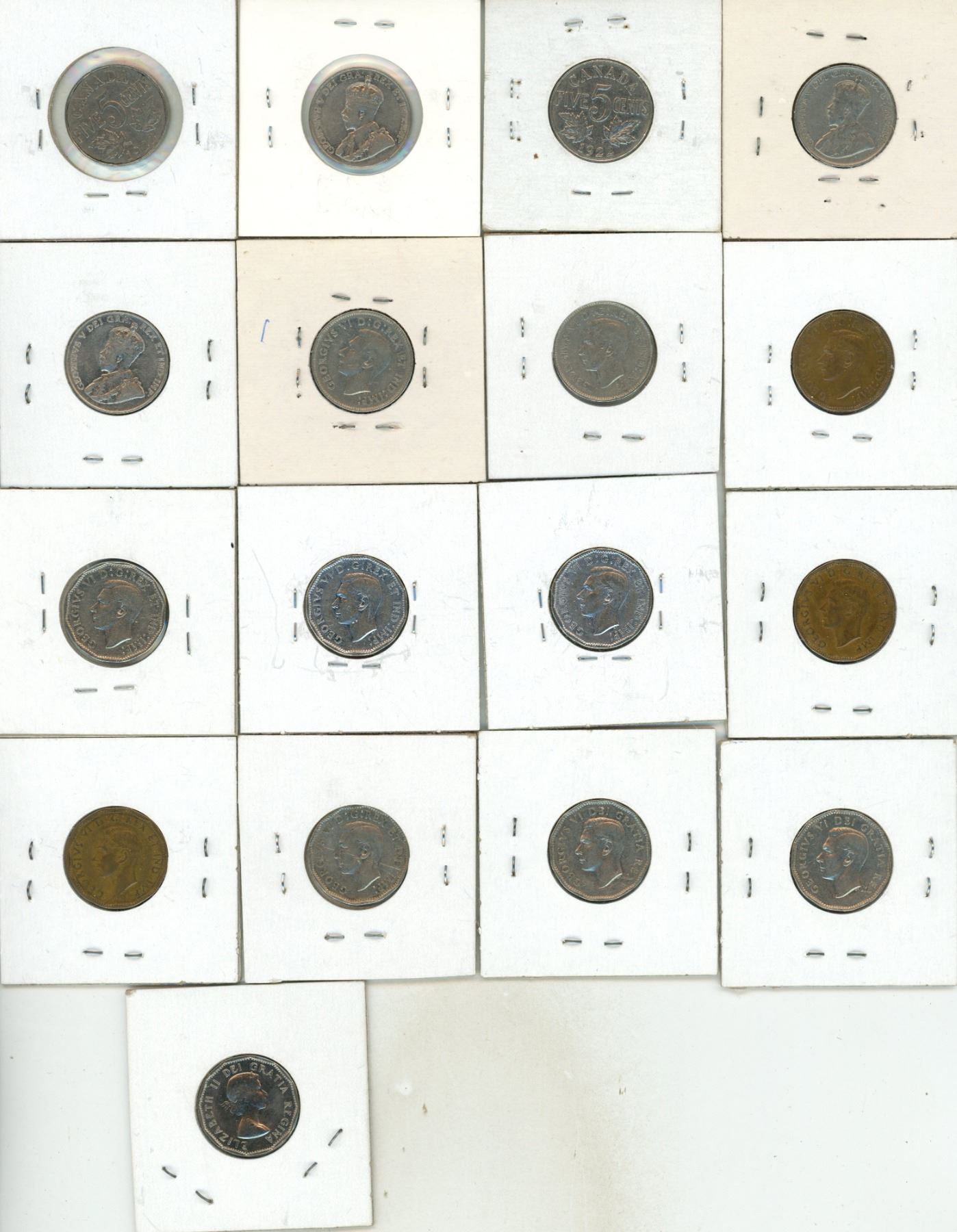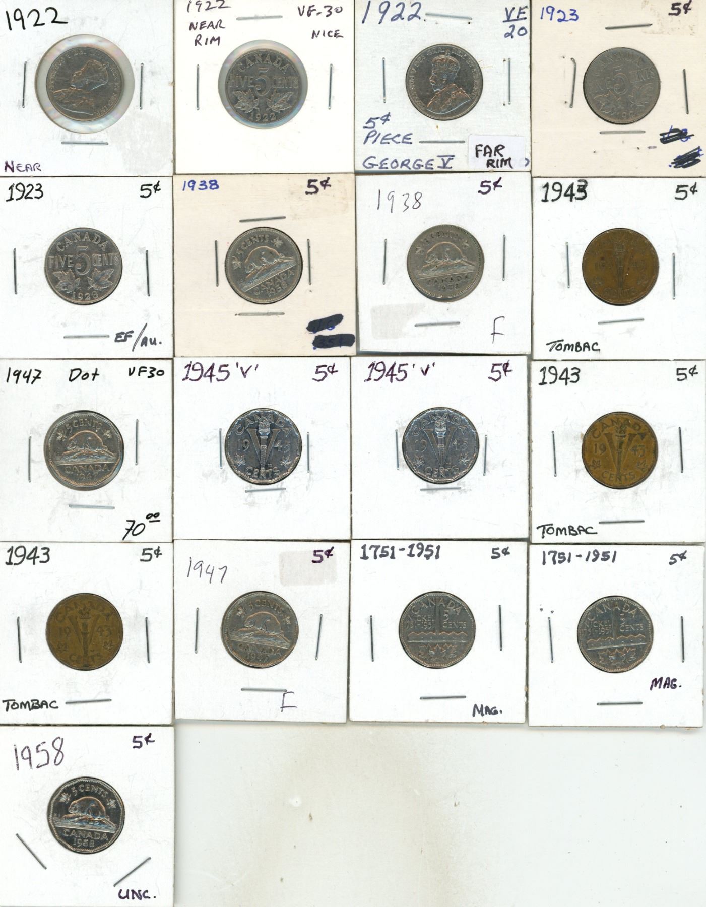 1922-1958 Canada Special 5 Cents Coins. (Total 17 Coins)