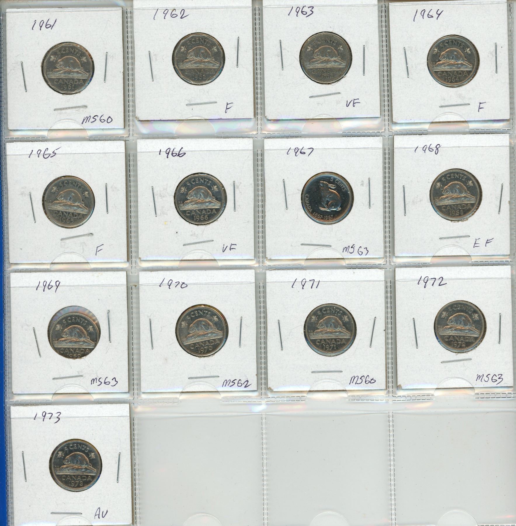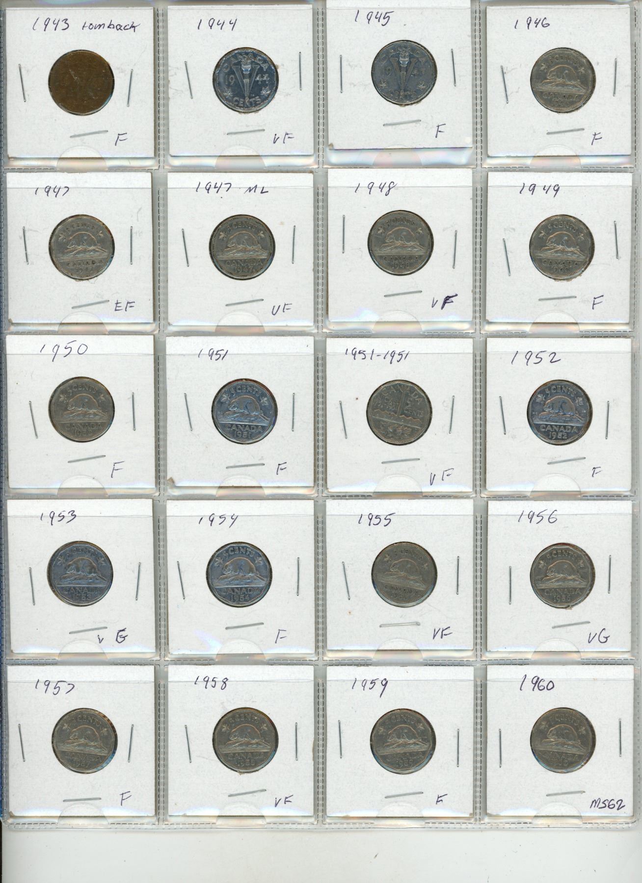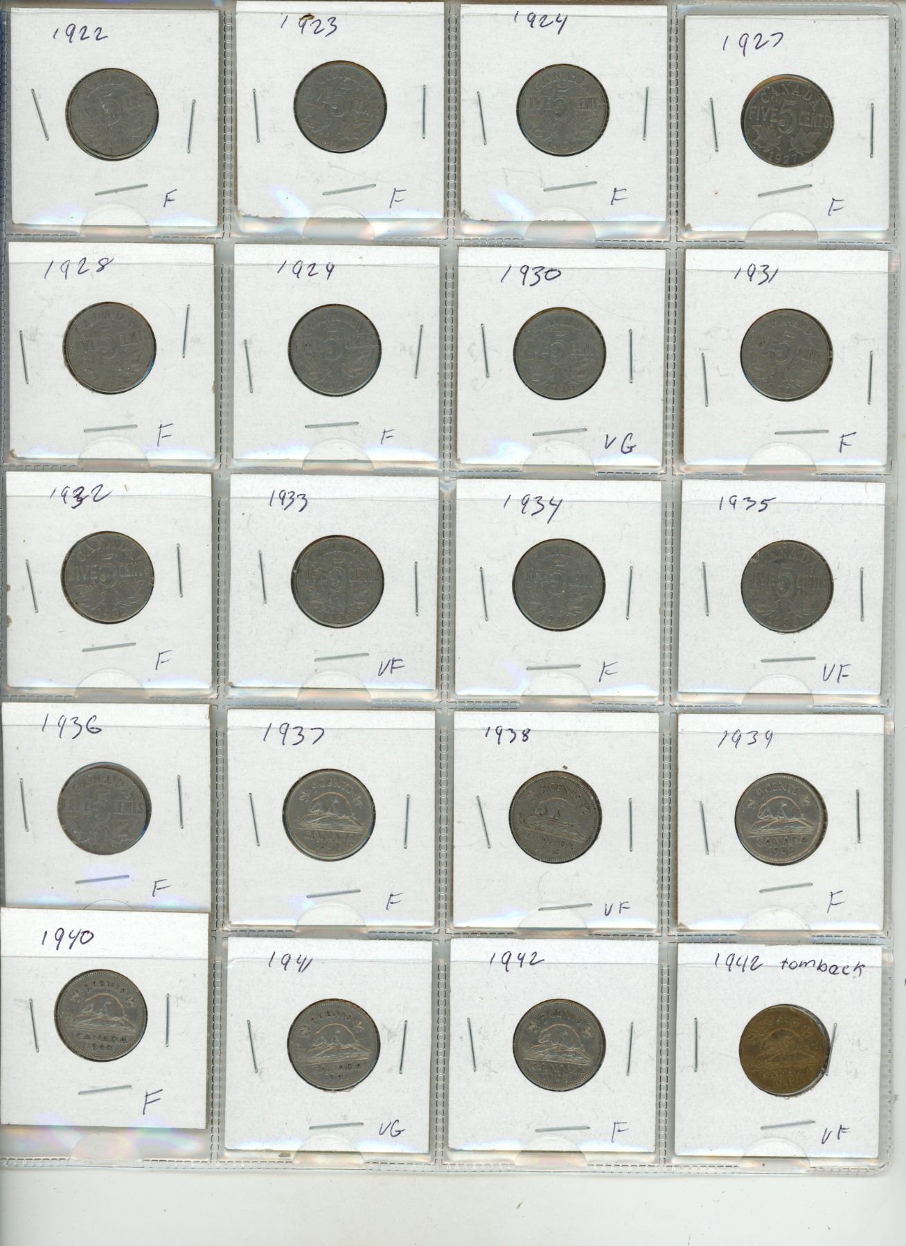 1922-1973 Canadian 5 Cents Coin. (Total 53 Coins)