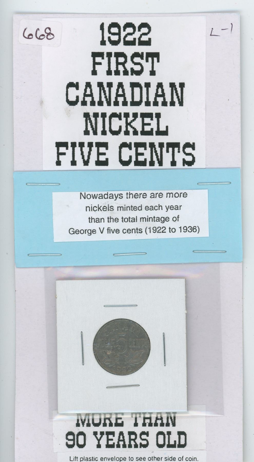 1922 George V5 ¢ - First Year of Issue for Nickel 5¢