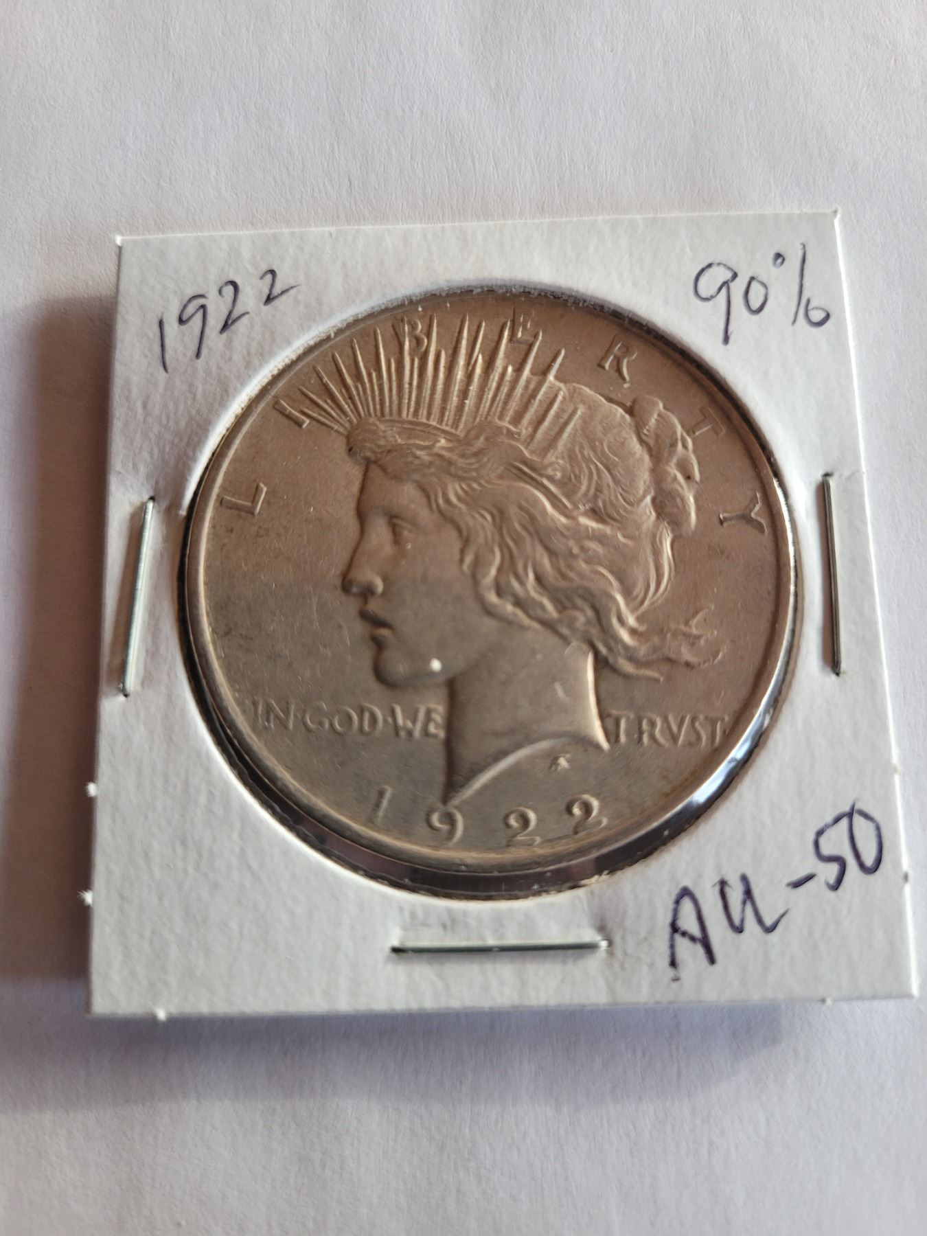 1922 Peace dollar USA 90% silver AU-50